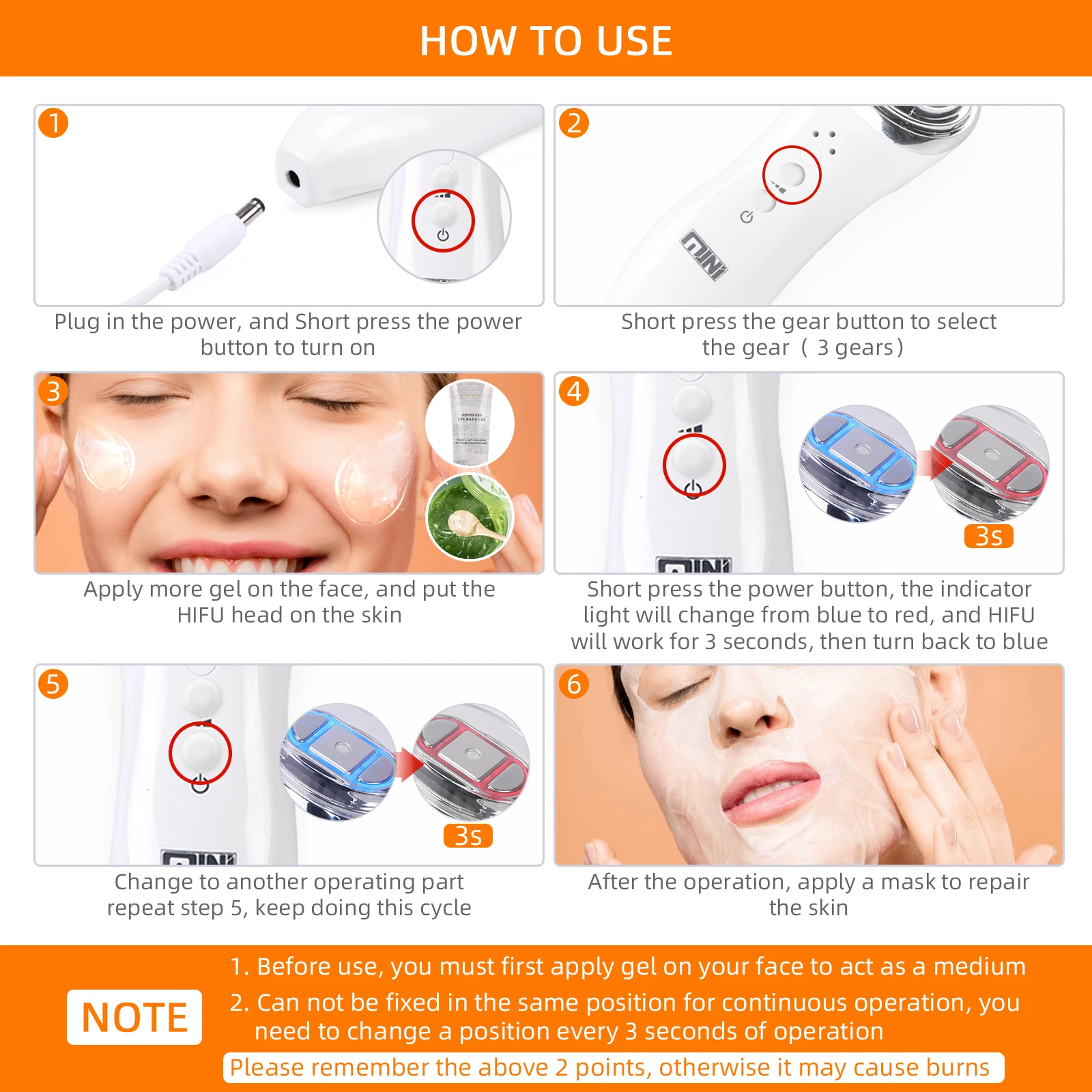 Ультразвуковой биполярный радиочастотный аппарат HIFU для ухода за кожей лица и шеи, массажер для лифтинга от морщин, подтягивающий радиочастотный аппарат для ухода за лицом