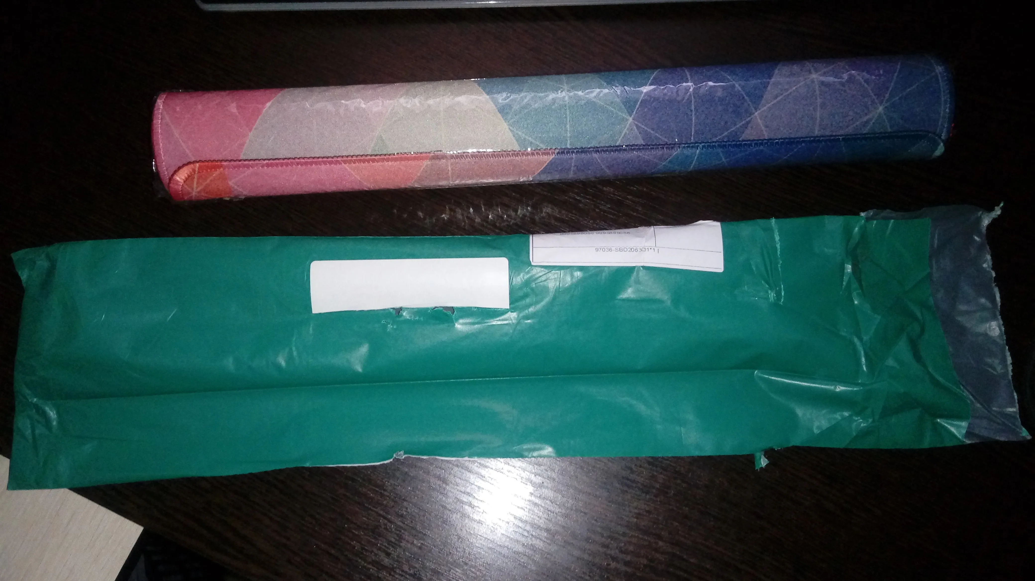 время с момента заказа до получения составило 17 дней, что очень долго, учитывая что склад в россии и доставка курьерской службой. с другой стороны, ни упаковка, ни сам товар при перевозке не пострадали, он вообще не мятый. товар соответствует описанию. размеры получились с небольшой погрешностью с обеих сторон около 5 мм, т.е. получилось 89,5х39,5. цвета яркие. присутствует лёгкий неприятный запах. толщина 2 мм, что ощутимо меньше другого коврика dexp, у которого 3 мм, там есть какая-то упругость, а этот жестковат. так что если вы берёте в качестве упора под локти, нужно искать что-нибудь потолще 2 мм. очень понравилось как прошиты края, толщина коврика совпадает с толщиной обмётки срезов.