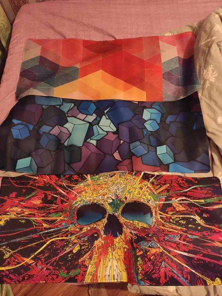 Брал с принтом кубиков. Некоторые писали, что не такой яркий, как на фото, но, по-моему, в точности, как в описании - яркий и красивый. Не такой толстый, как игровые коврики из магазинов. Короче, 10 из 10, я в восторге)