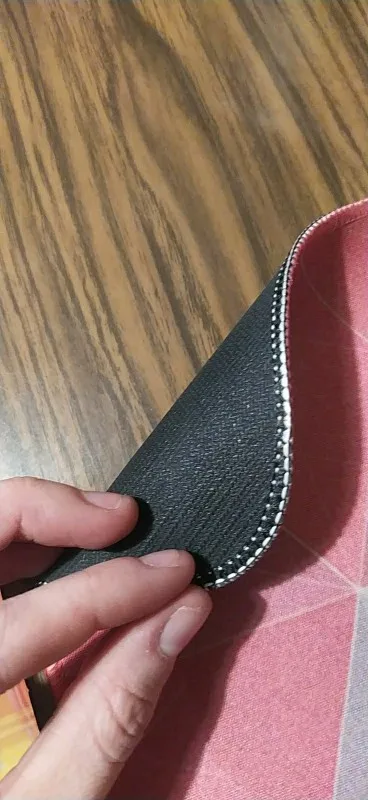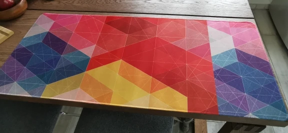 Качество печати и отделки краев хорошее, но в целом коврик не понравился. очень тонкий, не создает ощущения мягкой поверхности. Если хотите мягкий стол, не покупайте.