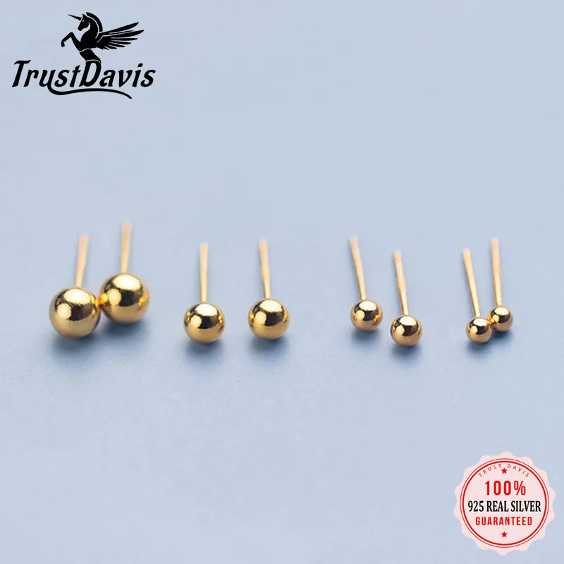 TrustDavis, ювелирные изделия из стерлингового серебра 925 пробы, раньше, серьги-гвоздики с твердым шариком для женщин, подарок для девочек, подростков, леди DS1331