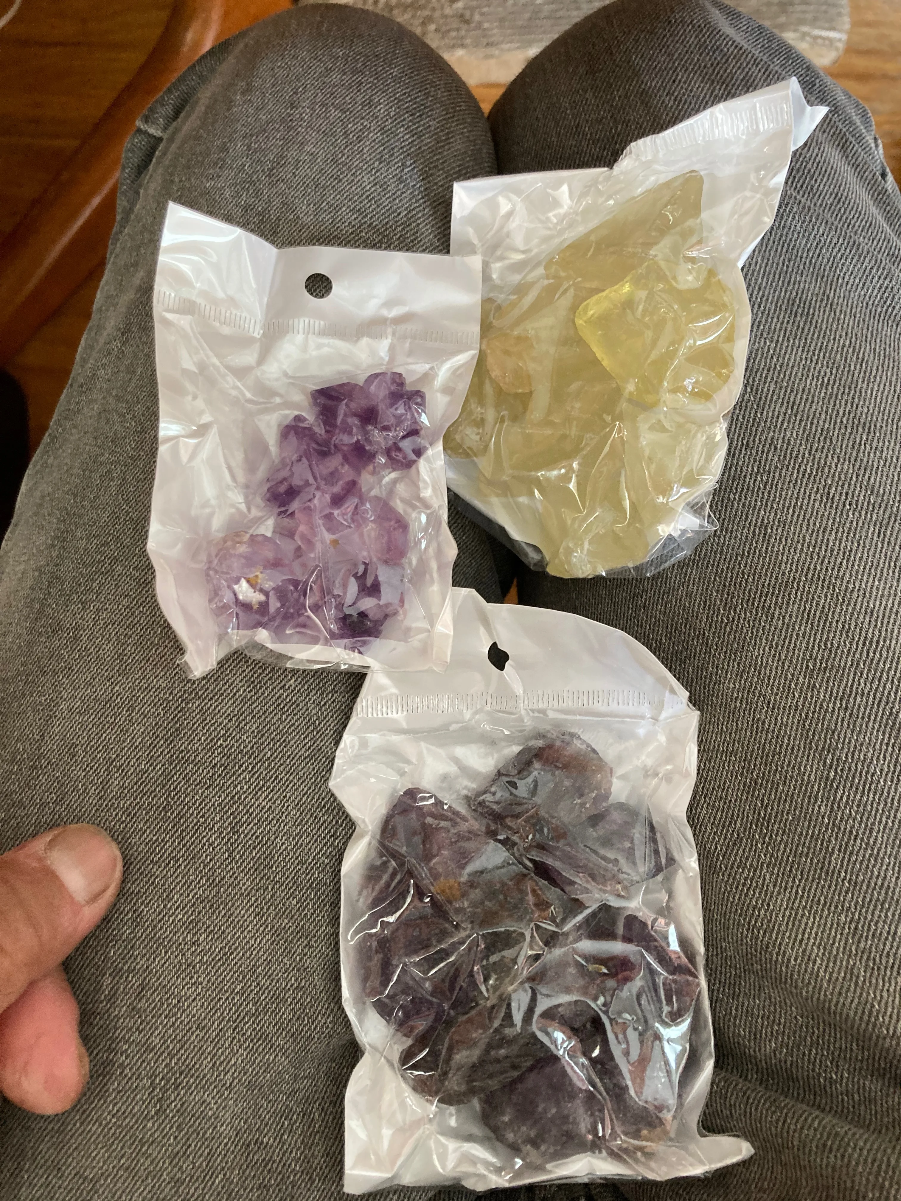 Хорошо упаковано, меньше блестит, чем показано в списке, но я все еще доволен. Может быть, я могу намочить или смазывать камни перед фотографированием? Достаточно насыщенного фиолетового цвета, чтобы увидеть фиолетовый цвет на солнце. См. фотографии.