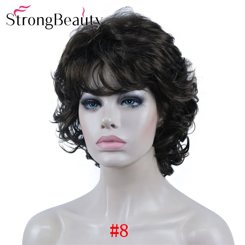 StrongBeauty синтетические короткие кудрявые парики термостойкие полные бесшовные волосы женские парики