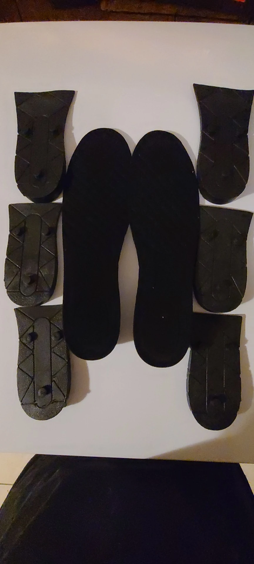. Прибыл в течение 3,5 недель с даты заказа. Заказали стельки 9 см. Они поставляются с самой большой стелькой плюс 3 пары небольших коротких штабелей. Штабелируемые имеют одинаковую высоту каждого из около 1,75 см и прикрепляются друг к другу в нижней части стельки большего размера. Когда все уложены вместе с самой большой стелькой, они не остаются вместе очень хорошо и не укладываются вместе. Они также не добавляют до 9 см. При укладке все вместе они составляют 7,9 см. Вот почему я дал 4 звезды вместо 5 звезд. Кроме того, они все еще в порядке для своей цели, хотя я бы рекомендовал использовать 2 небольших штабеля вместо всех 3 вместе для сбалансированных проблем, если вы собираетесь делать некоторые прогулки. Если вы не можете убраться со штанами всех 3 маленьких, если вы будете стоя или просто немного гулять. Верх с вашей стопой имеет мягкую ткань для комфорта и немного ребристый, я думаю, fie не скользит.