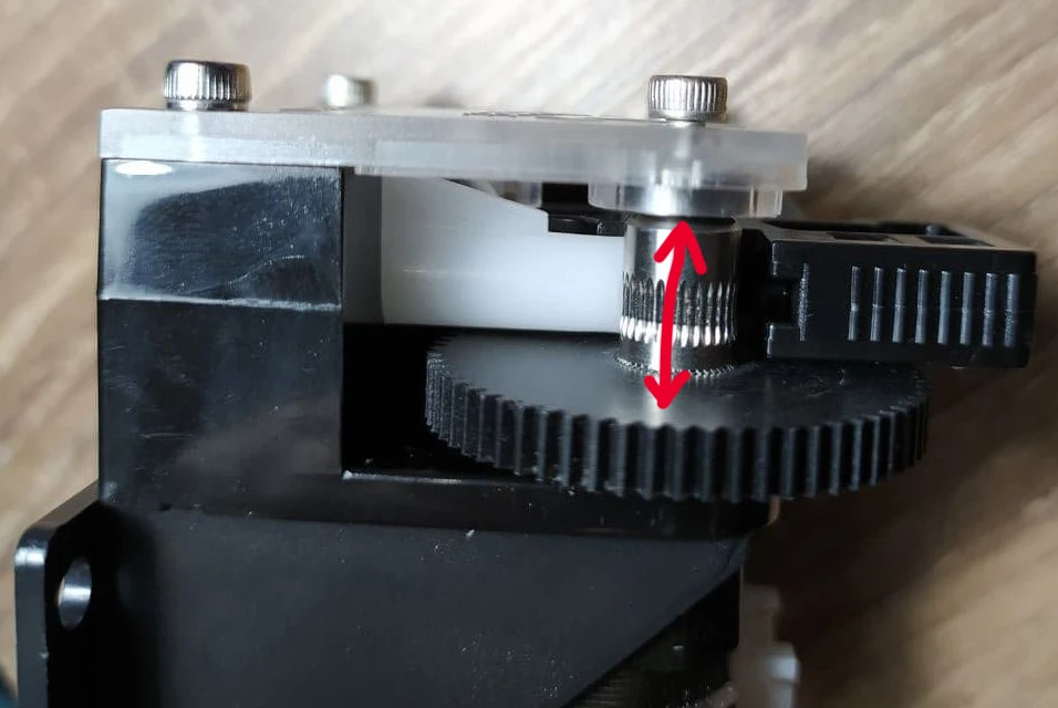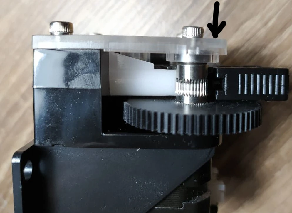 Вал большой шестеренки коротковат, При стягивании винтом верхняя крышка гнется и шестеренка подклинивает. Под подшипник подложил прокладку, стало норм. На 1 фото винт не затянут видно зазор между торцом вала и подшипником. 2 фото винт затянут подшипник уперся в вал, но и крышка согнулась.