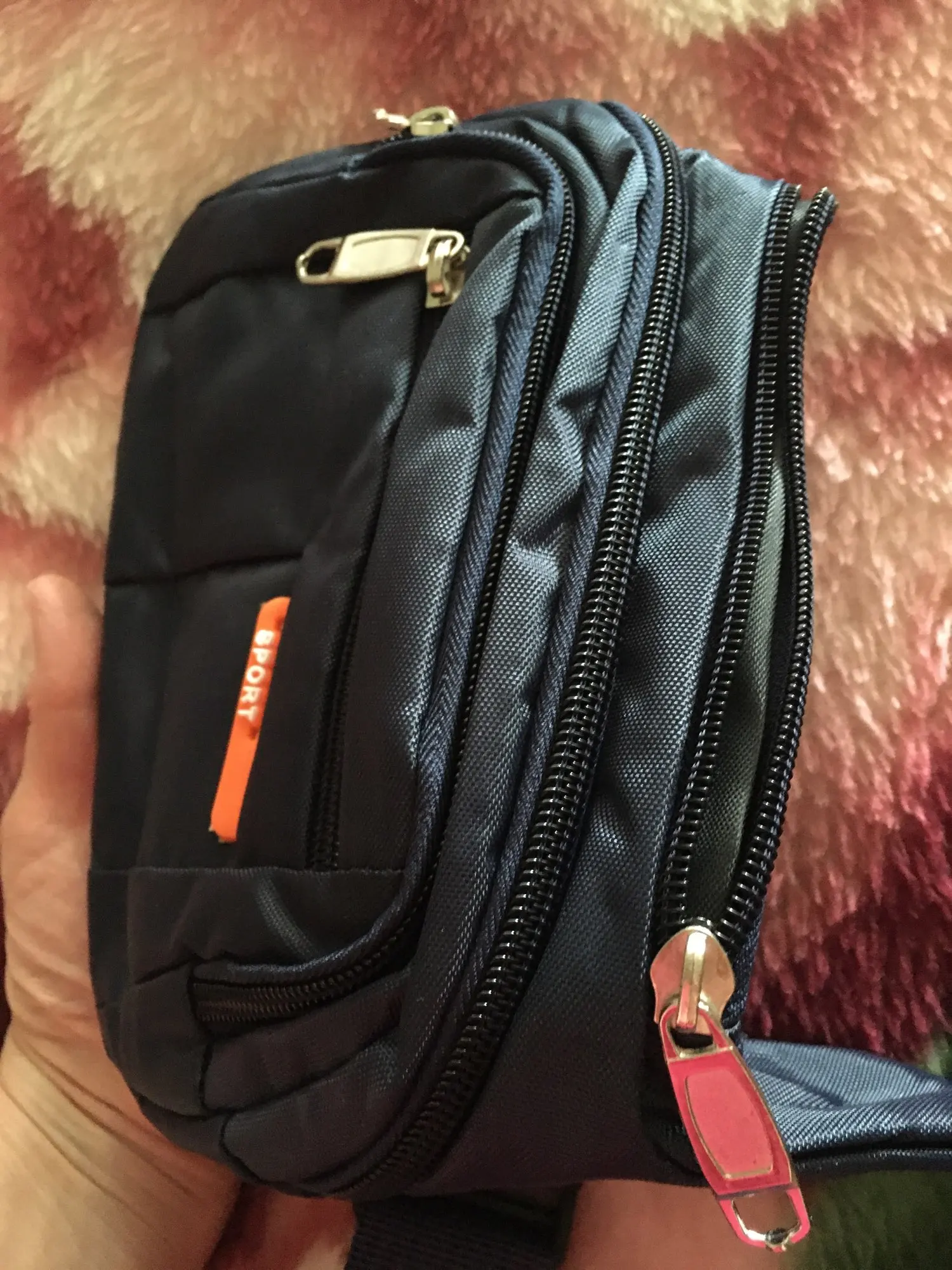доставка очень быстрая! Сама сумка просто огонь! Очень красивая! Взяла розовую, боялась, что будет кислотно розового цвета.. , а фактически она розовато- сиреневого цвета, не такой яркий. Меня это очень устраивает. Пошив качественный, замки все работают, спокойно заменит дамскую сумочку. Кормашики глубокие. Размер на талии регулируется. На мою талию 75 см, немного большевата. Мерила на голое тело. На одежду, думаю будет нормально. Берите, не пожалеете. Спасибо продавцу!