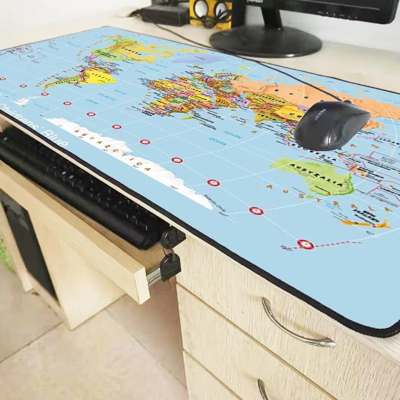 Сверхбольшой коврик для мыши Mairuige, синий игровой коврик для мыши с картой мира, Противоскользящий резиновый игровой коврик для мыши с закругленными краями, бесплатная доставка