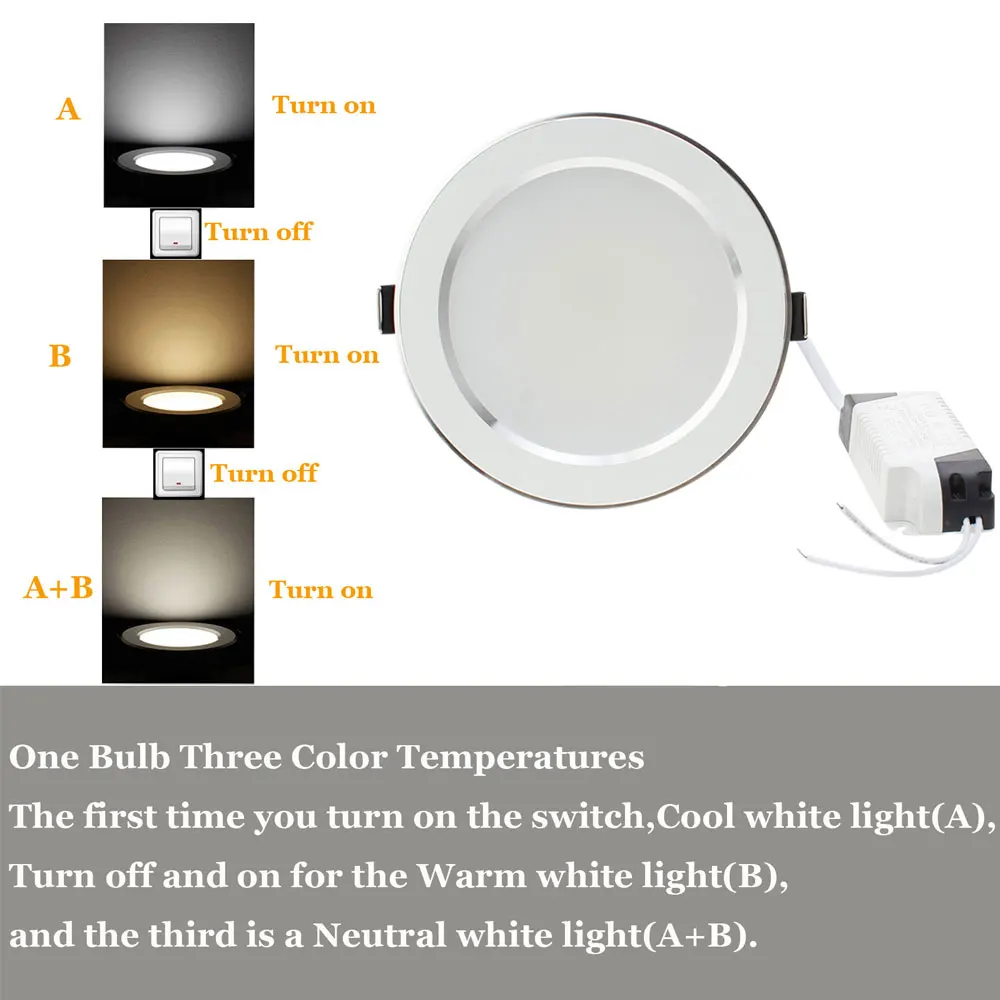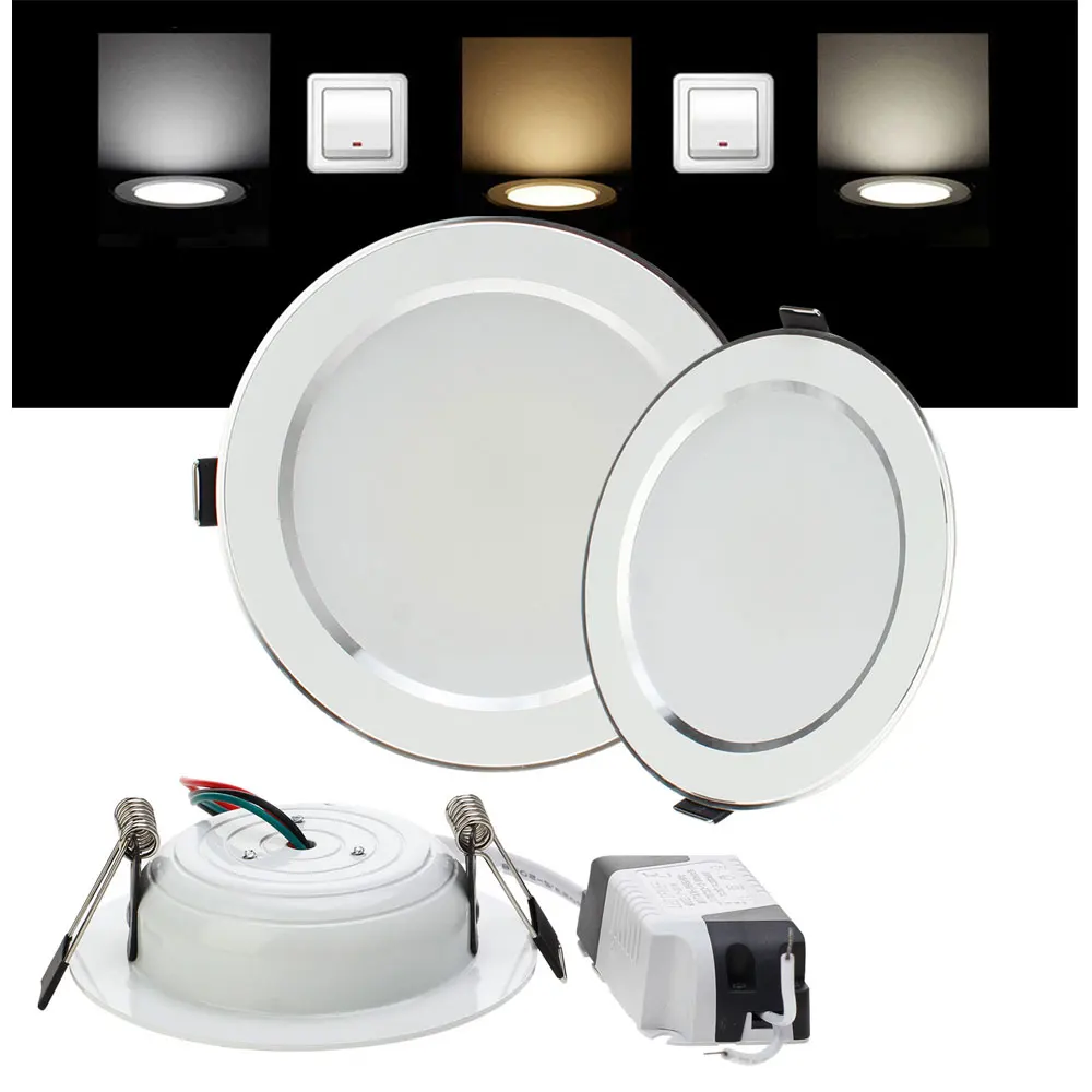 Светодиодный светильник 3 Вт 5 Вт 7 Вт 9 Вт 12 Вт 15 Вт 18 Вт круглый встраиваемый светильник 85-265 в холодный + нейтральный + теплый белый светодиодный светильник для помещений