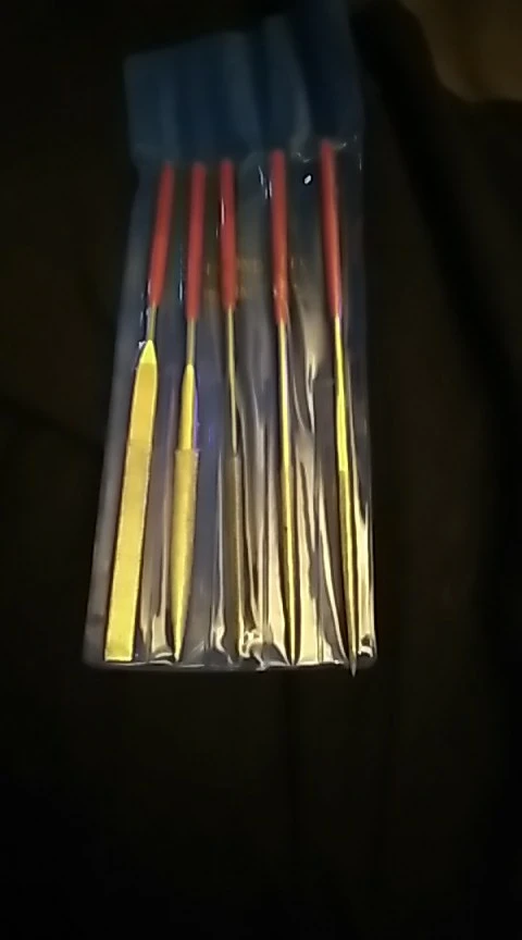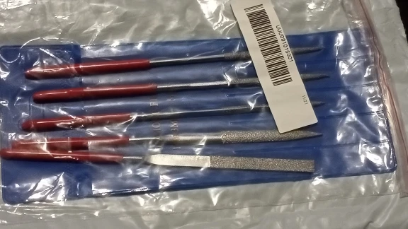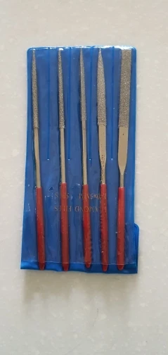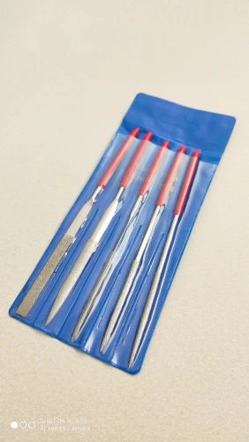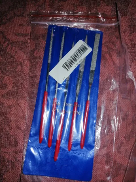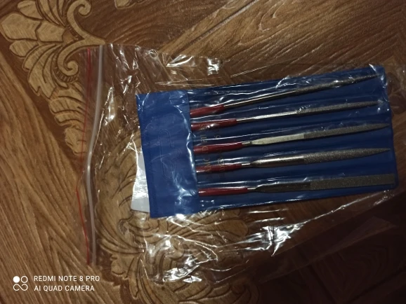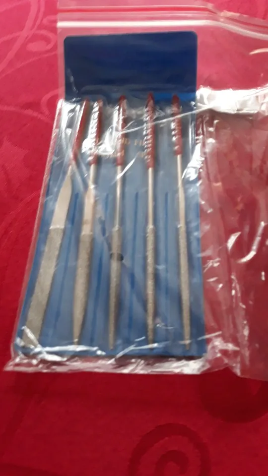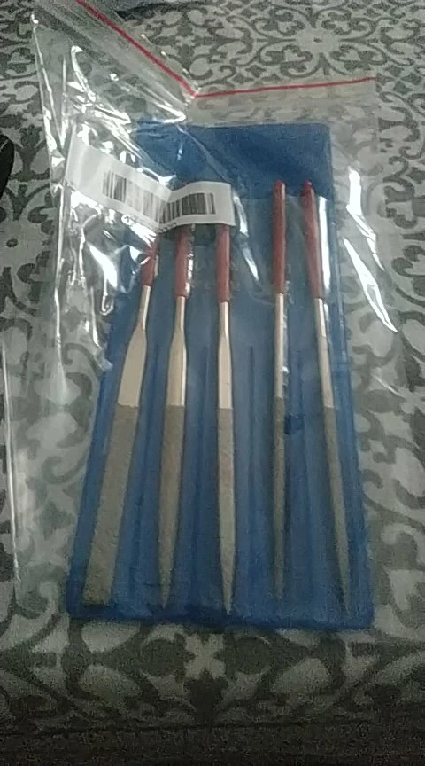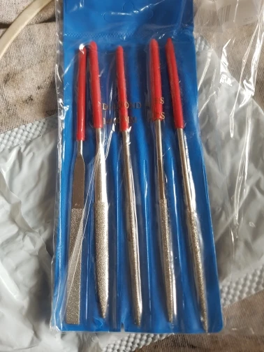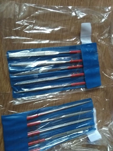 Заказ получен. упаковка обычный пакет, даже без пузырьков. Напыления совсем немного, в среднем 5 см. всего. На фото смотриться намного больше. На одном из надфилей можно сказать совсем отсутствует. Сколько прослужит вопрос. Для обработки мягких металлов подойдет.