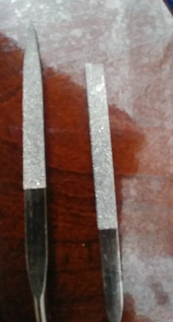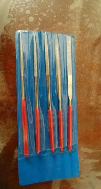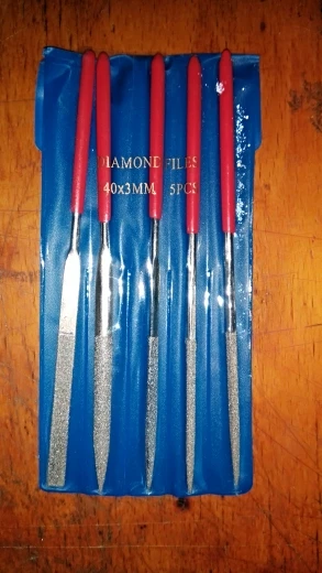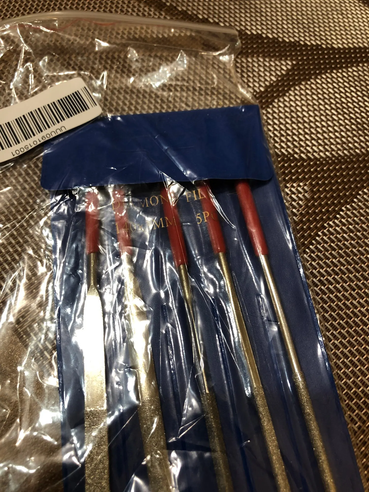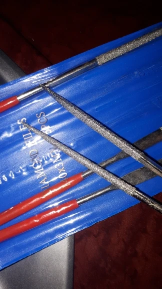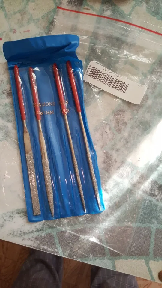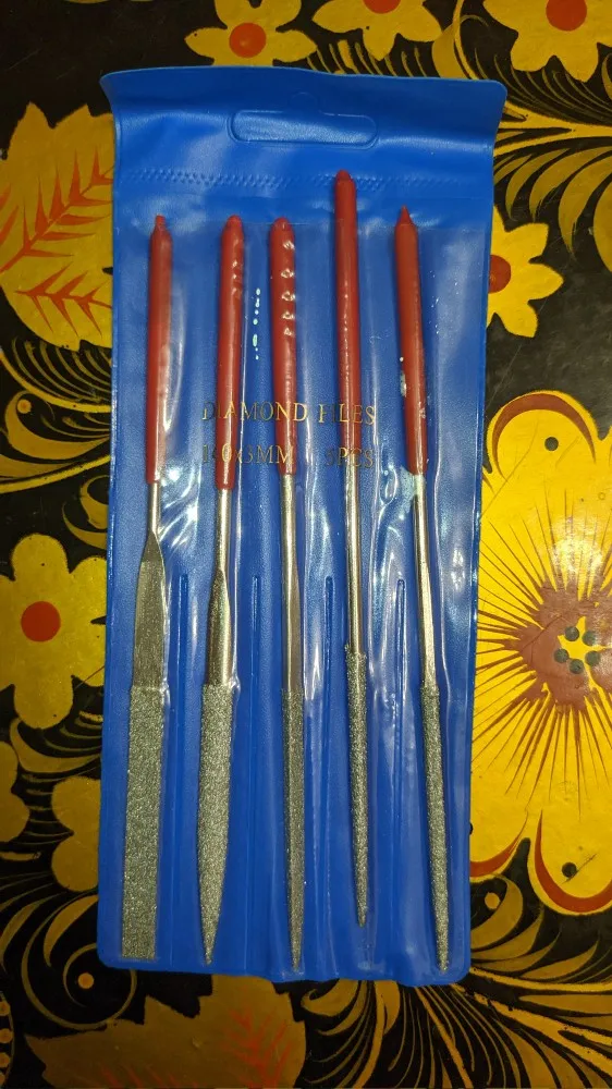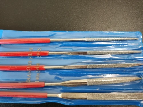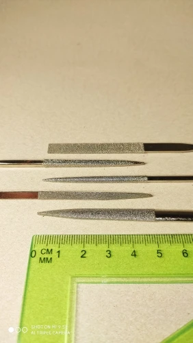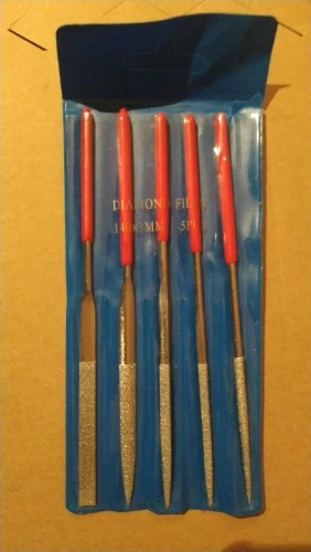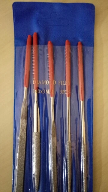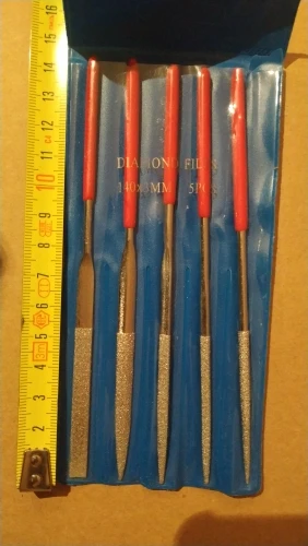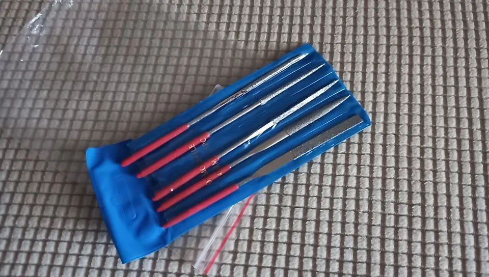 В комплекте с напильниками идёт небольшой чехол, очень порадовало. Я был чертовски удивлён количеству алмазов на рабочей зоне, и ещё больше удивился когда стал разглядывать под лупой! Проверял на небольшом кусочке титанового сплава, грызёт словно это не титан а алюминий!