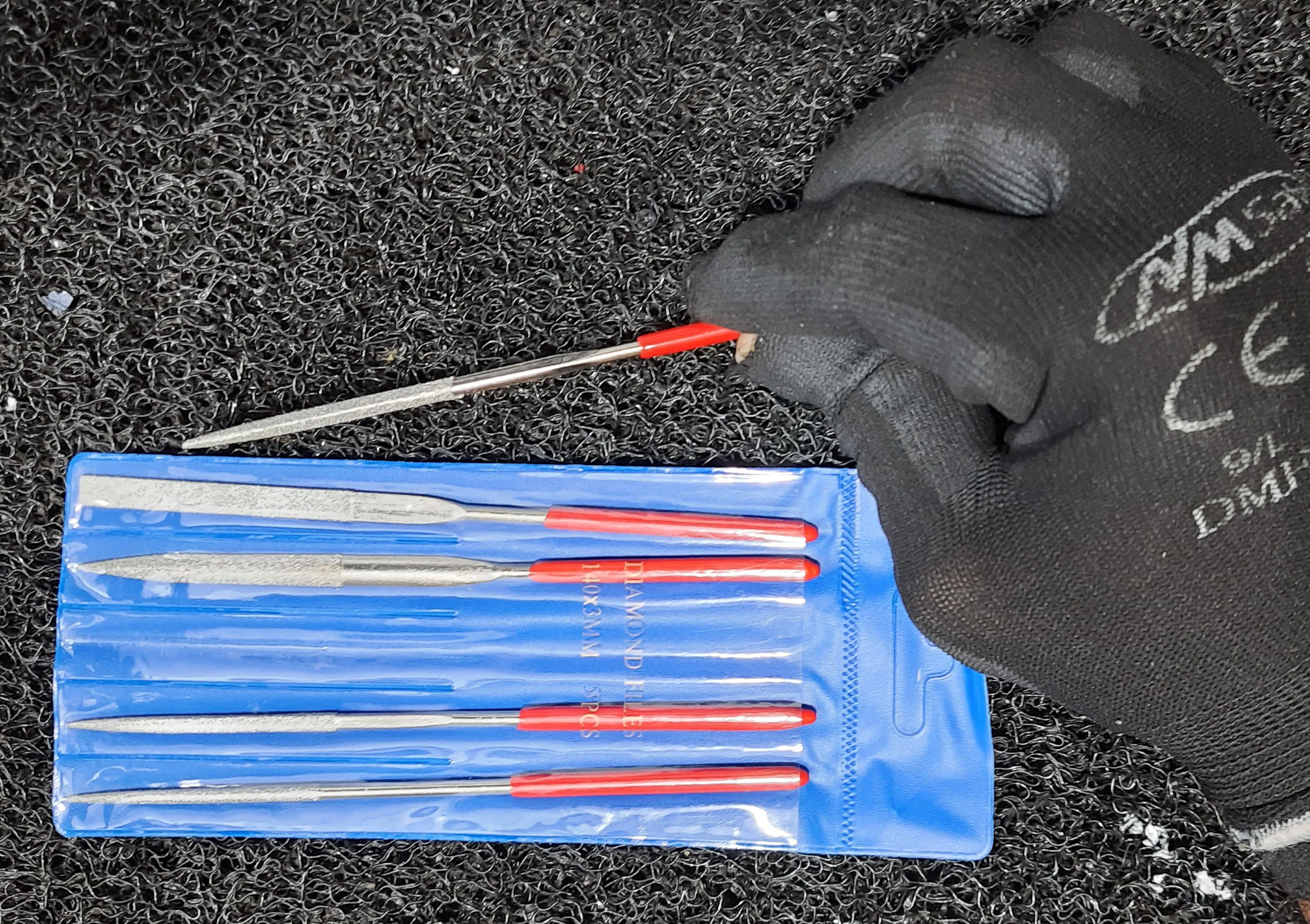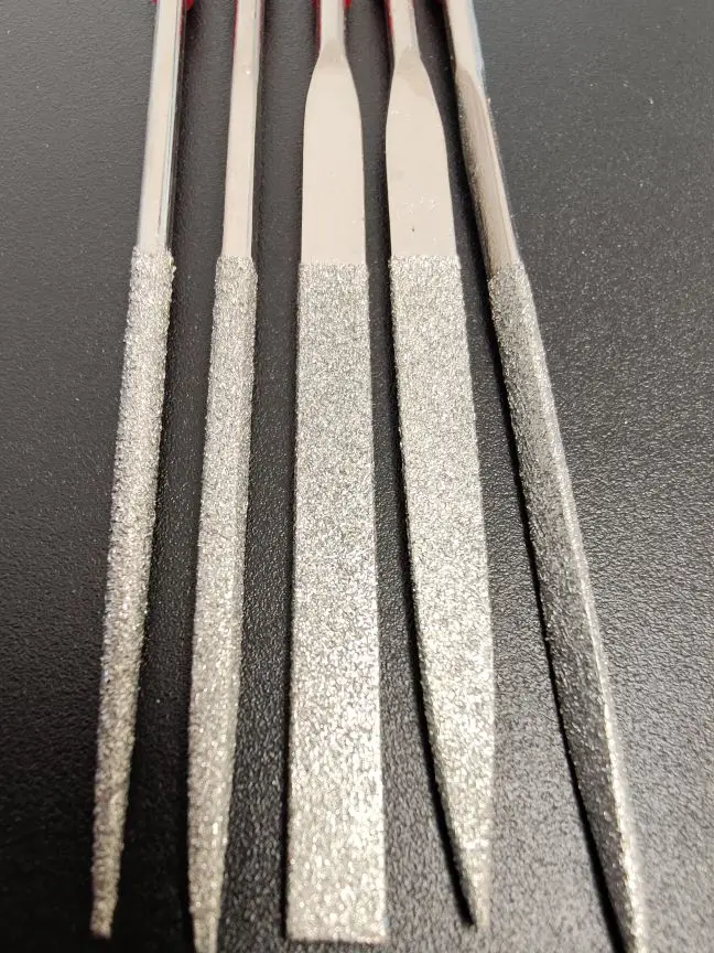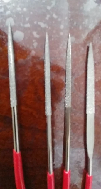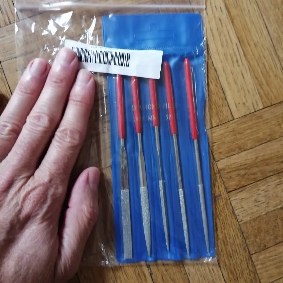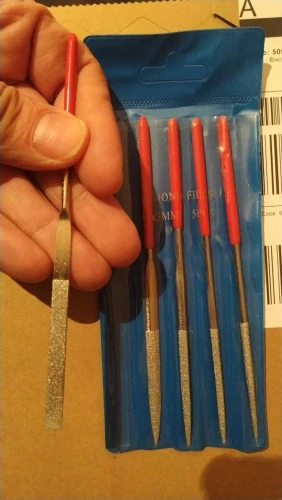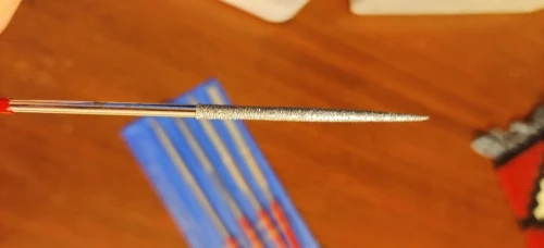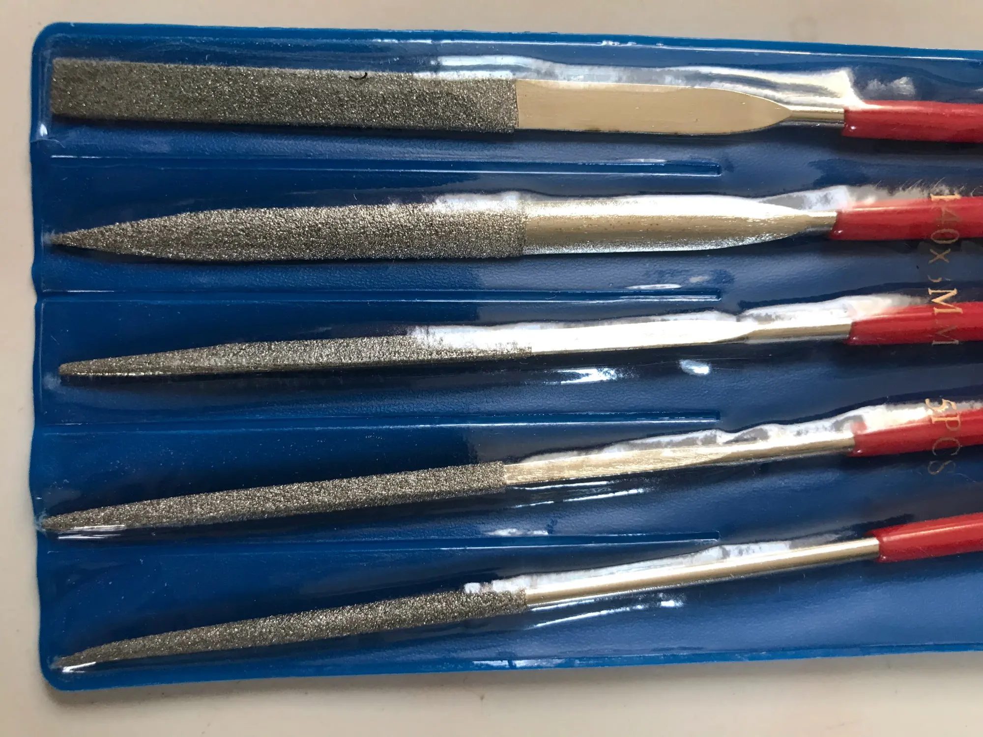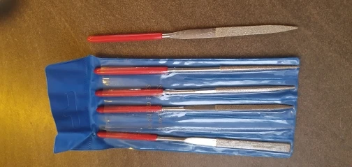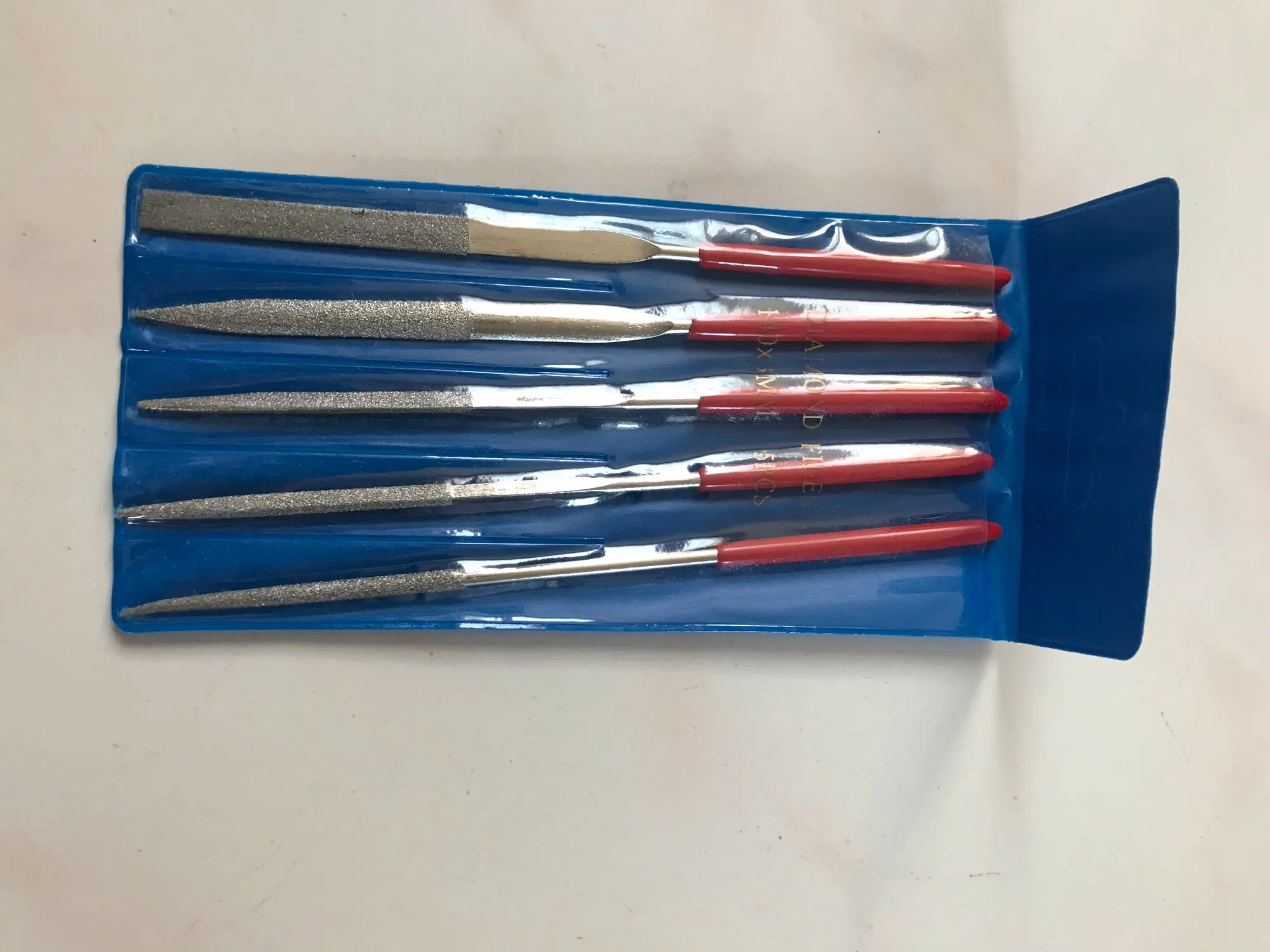 В комплекте с напильниками идёт небольшой чехол, очень порадовало. Я был чертовски удивлён количеству алмазов на рабочей зоне, и ещё больше удивился когда стал разглядывать под лупой! Проверял на небольшом кусочке титанового сплава, грызёт словно это не титан а алюминий!