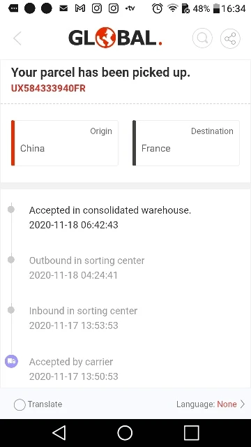 Страна: CO Доставка: Cainiao Super Economy Global 29.12.2020