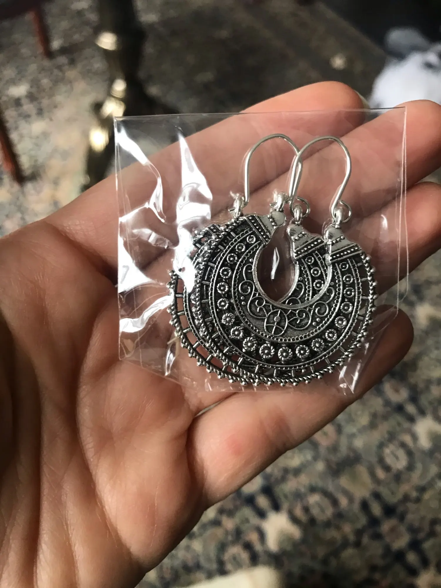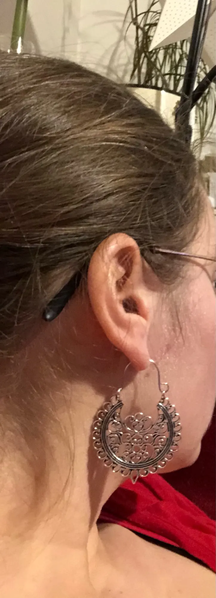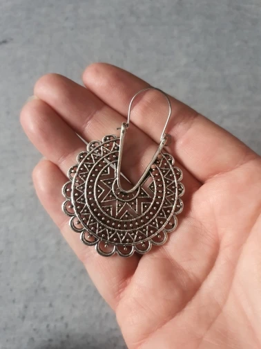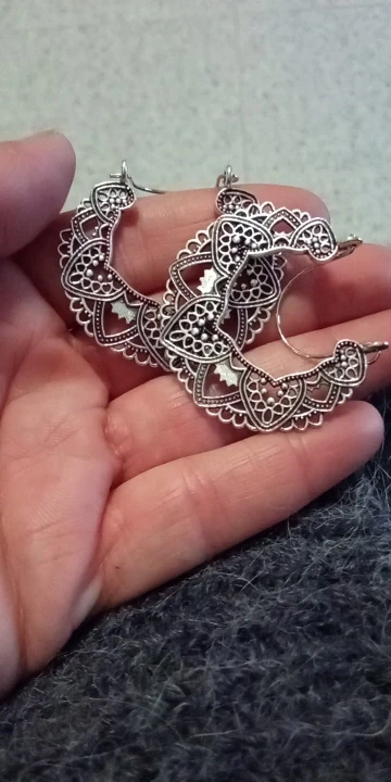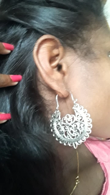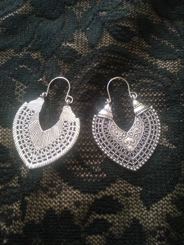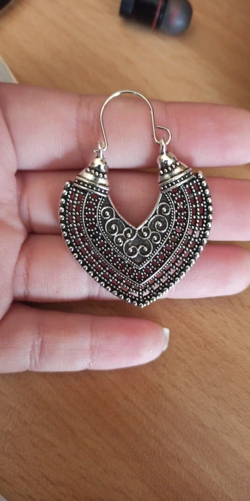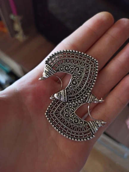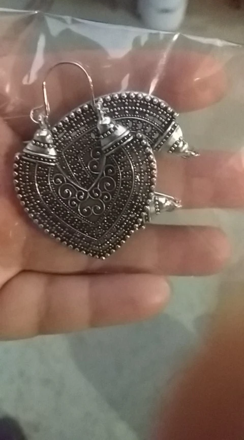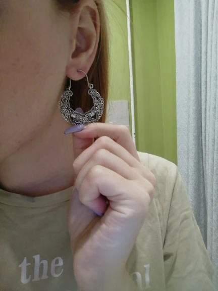 Серьги красивые, они выглядят по-настоящему этнически. Это украшение не очень тяжелое, но я думаю, что это понравится тем, кто привык носить большие и массивные серьги.