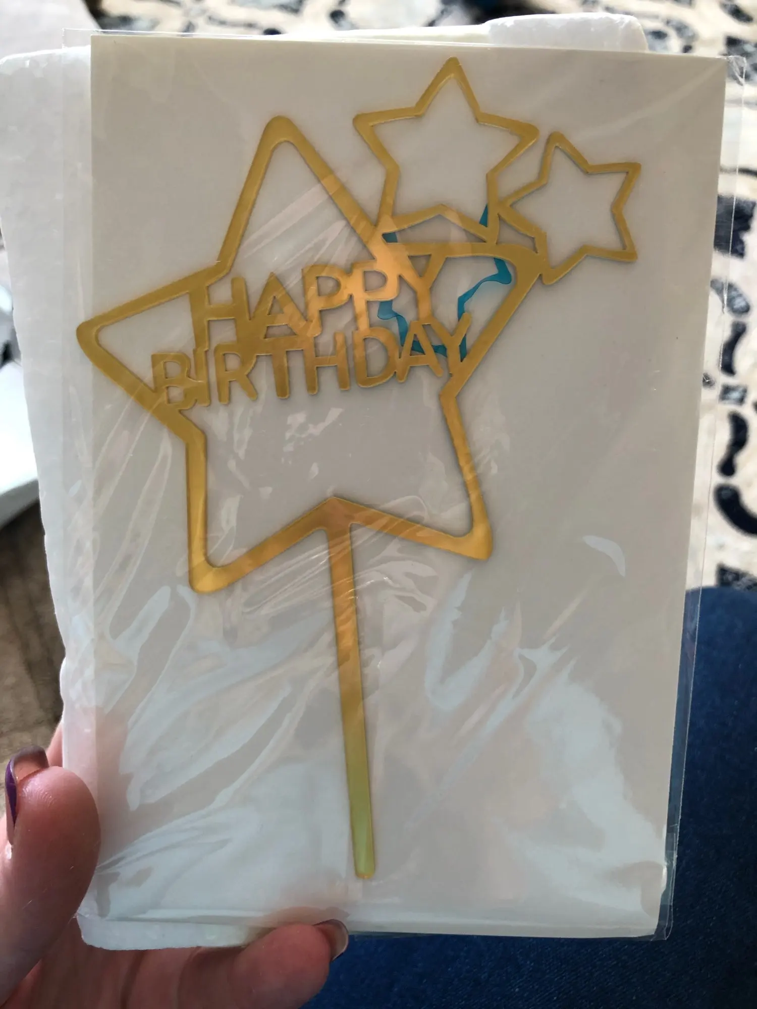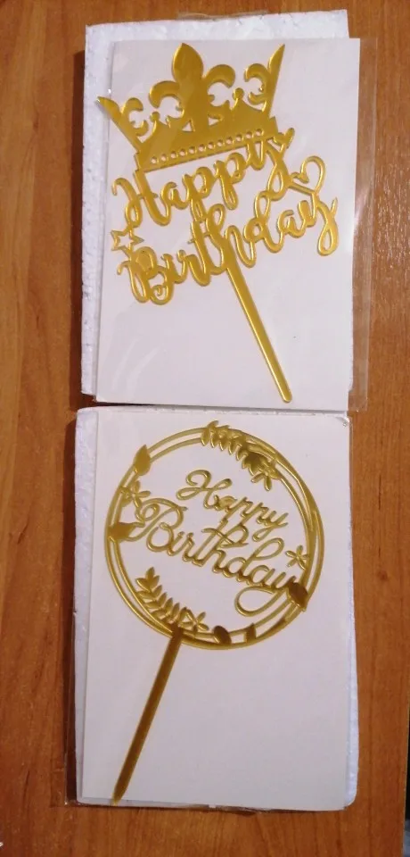 Заказ пришёл очень быстро, не больше 3 недель. Товар как на картинке, осталось вставить в торт на праздник. Краска ровная не облезшая с одной стороны золотой цвет с другой синий ( что мне показалось странным) . Упакован надёжно, ни чего не сломалось.