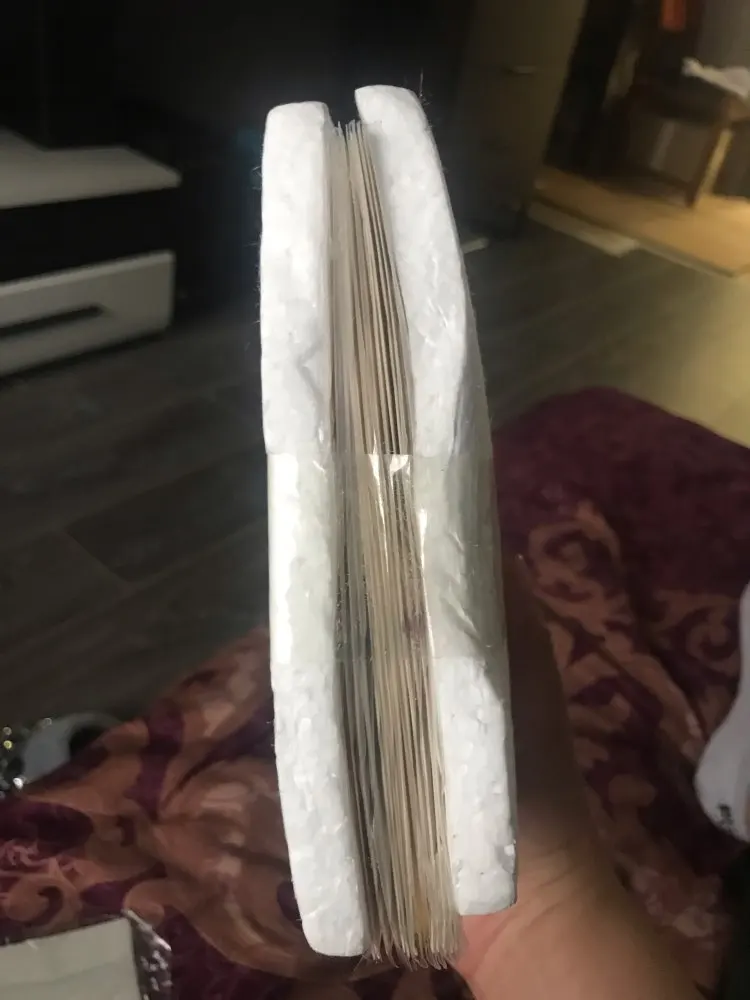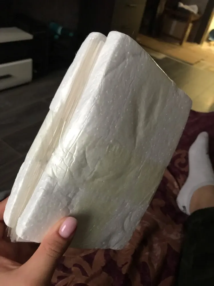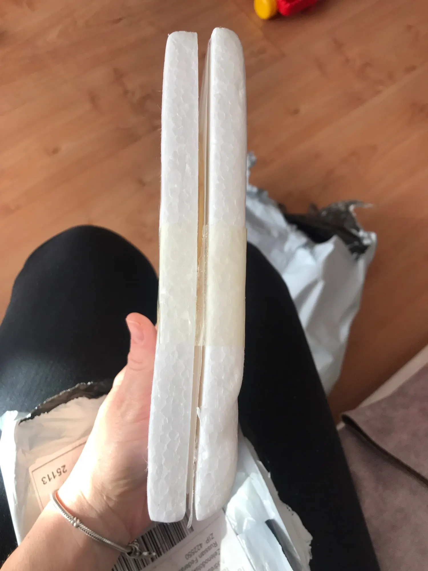 Пластиковый топпер, перед использованием надо снять плёнку с двух сторон, пришёл целый, но я много заказала и их все в стопке прислали, а так , упакованы в целлофан. Доставка быстрая и бесплатная была.