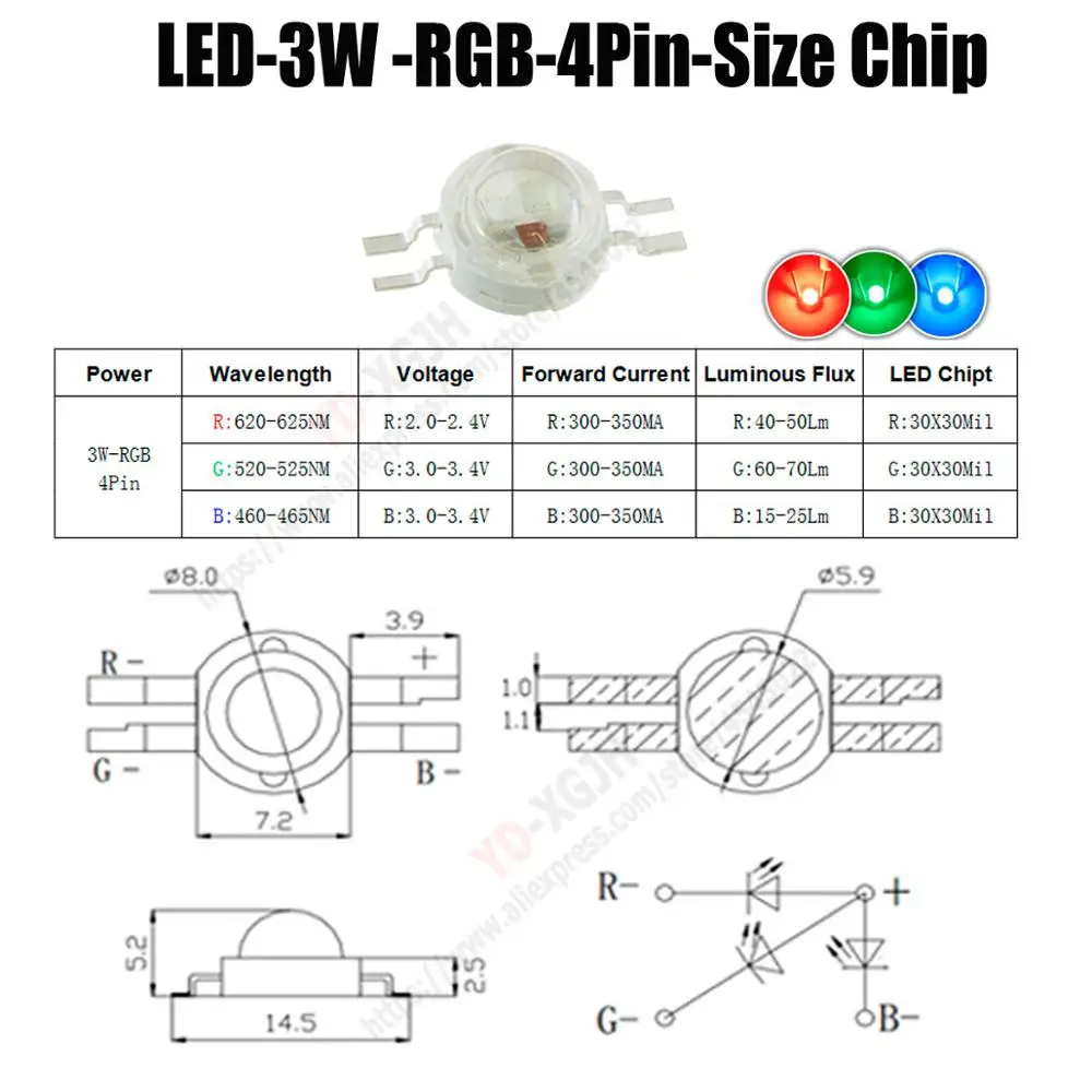 Номер моделиRGB 1W 3W Watt 4Pin 6Pin lntegrated diode
