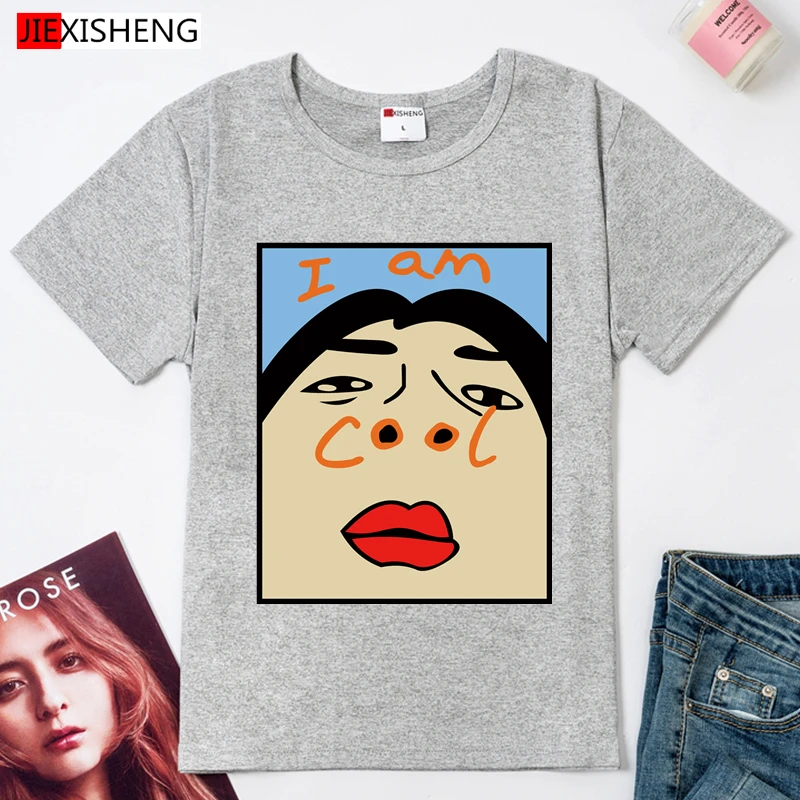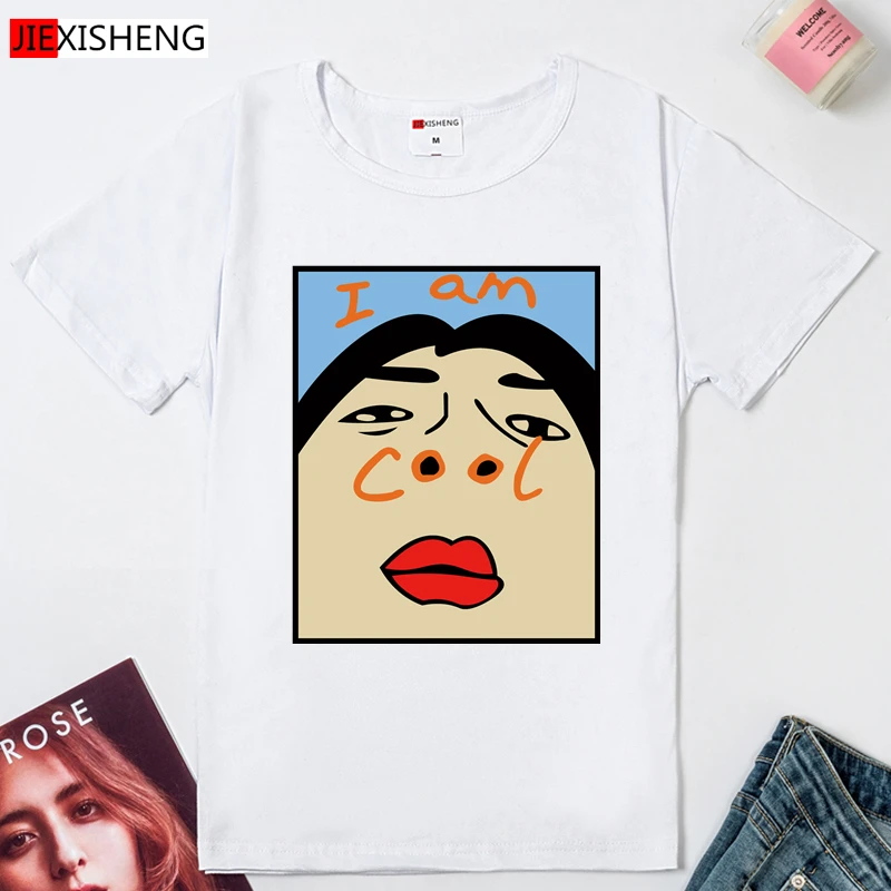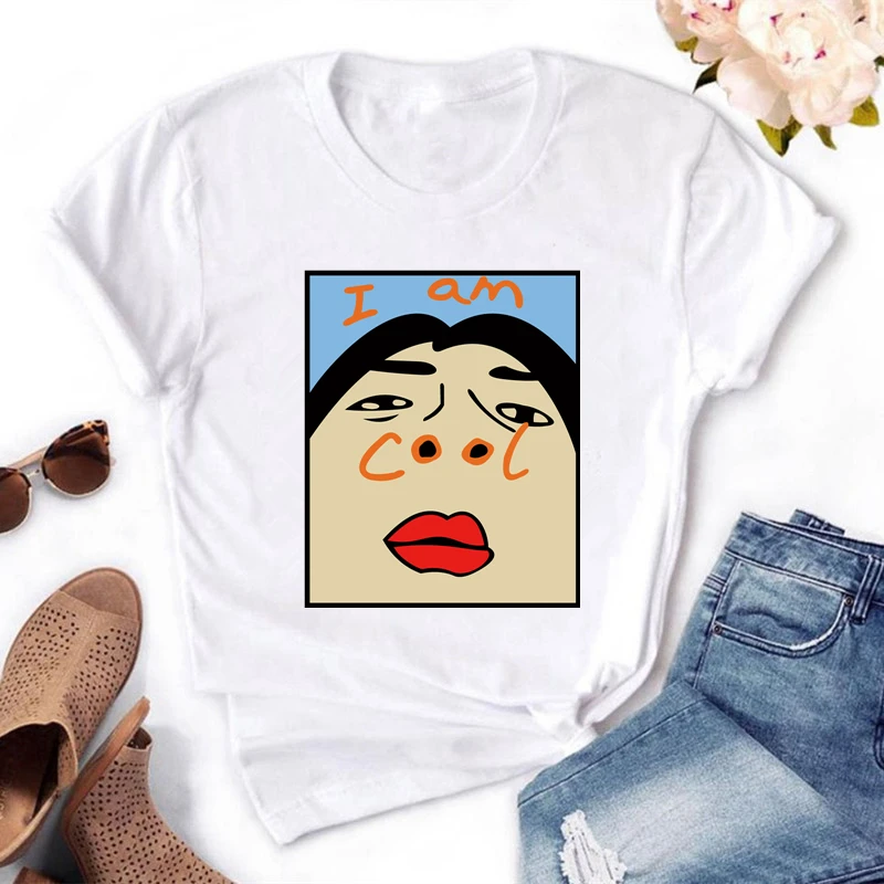 Модный стиль, я с классным принтом в виде букв для женщин Футболка 2020 летняя футболка с короткими рукавами, с круглым вырезом, в стиле Харадзюку футболка размера плюс, топы белого цвета, футболки для девочек