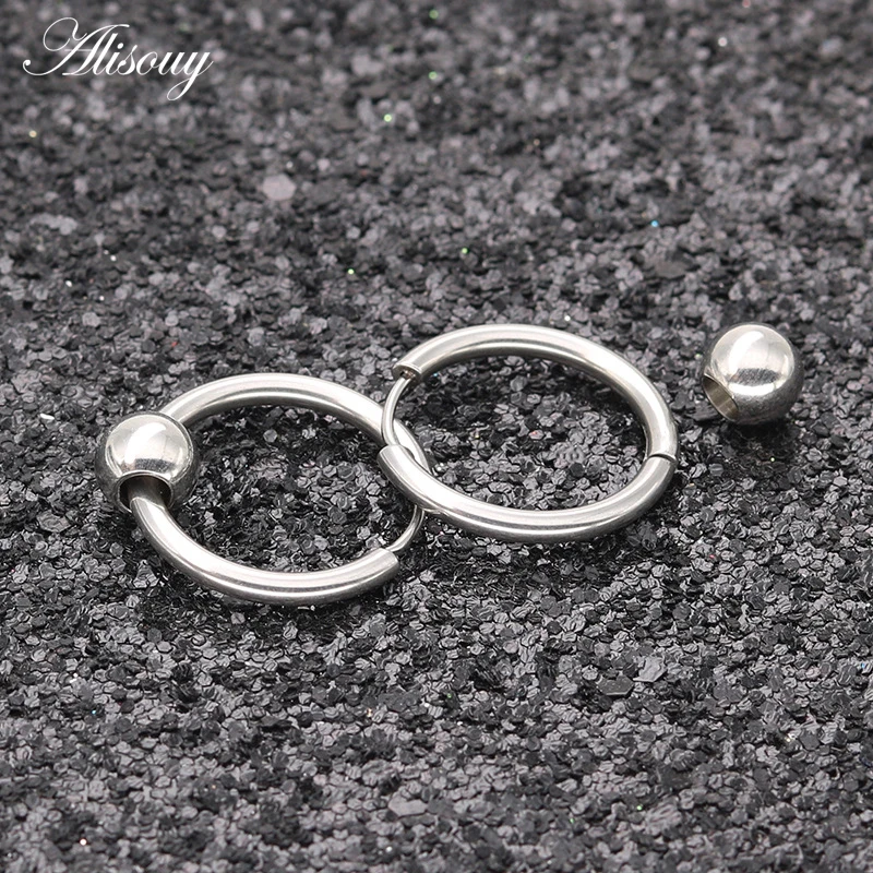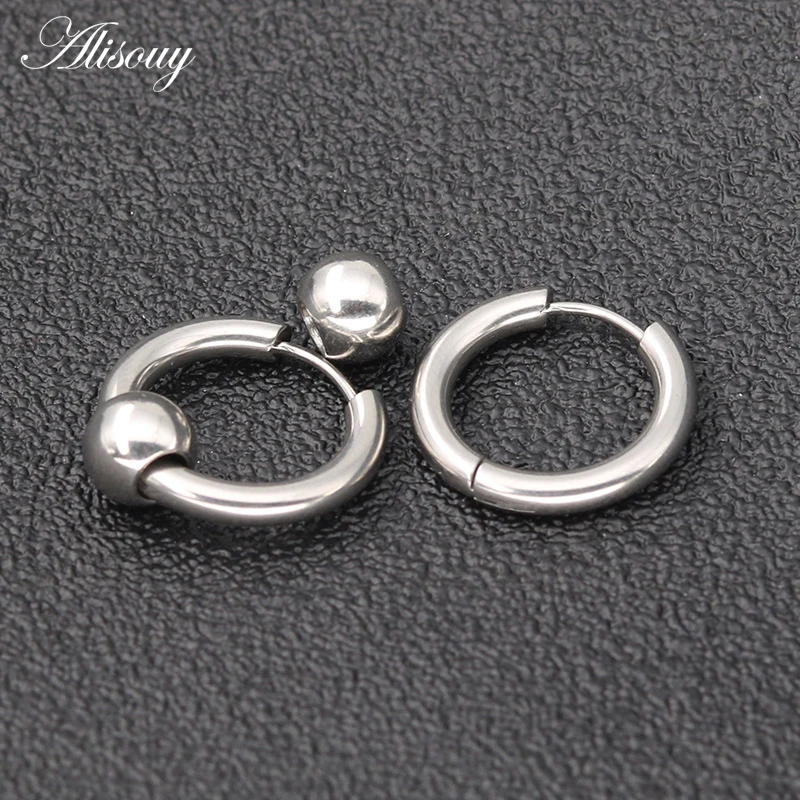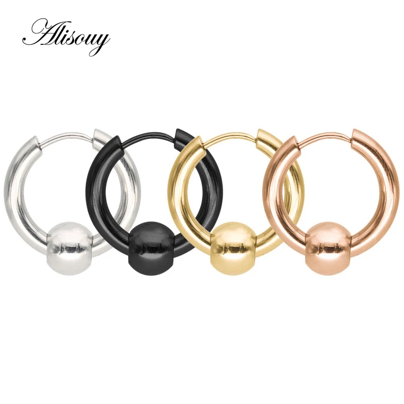 Лидер продаж, круглые серьги Alisouy для мужчин и женщин, серьги-кольца из нержавеющей стали черного, золотого, серебряного цветов с ручками и шариками, серьги-кольца