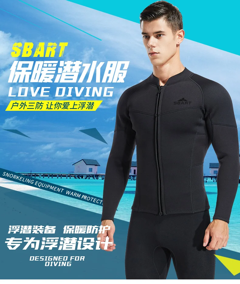 Костюм для дайвинга 3 мм, куртки, мужская Неопреновая куртка для дайвинга, кайтсерфинга, костюм на молнии спереди