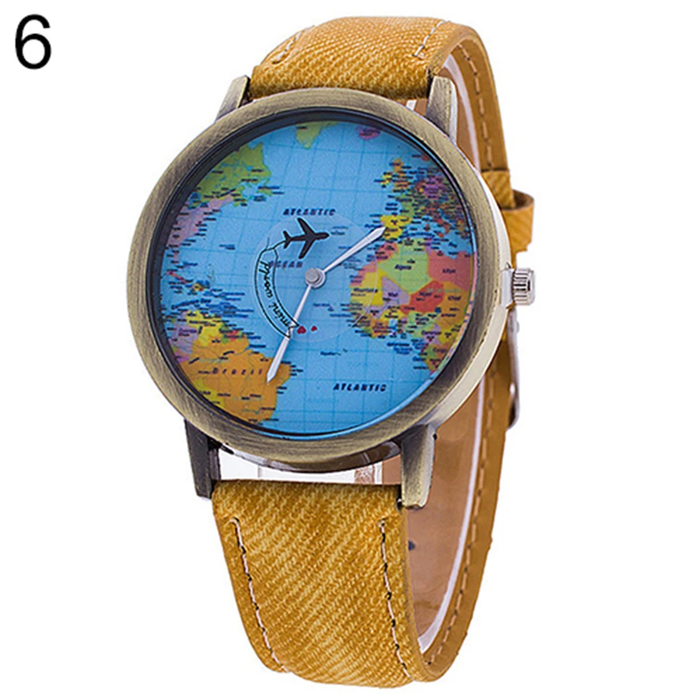 Часы наручные женские кварцевые с картой мира, популярные брендовые Роскошные Аналоговые с ремешком из джинсовой ткани, для студентов