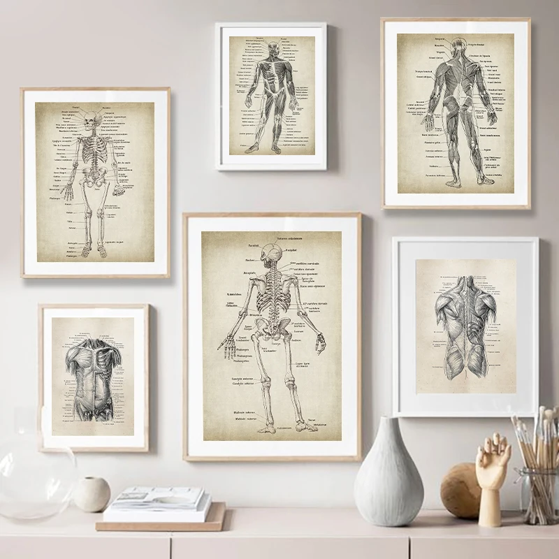 Анатомия человека на холсте принты и плакат, ретро анатомический плакат из плотной ткани, Декоративная Настенная картина без рамки врача клиника Декор