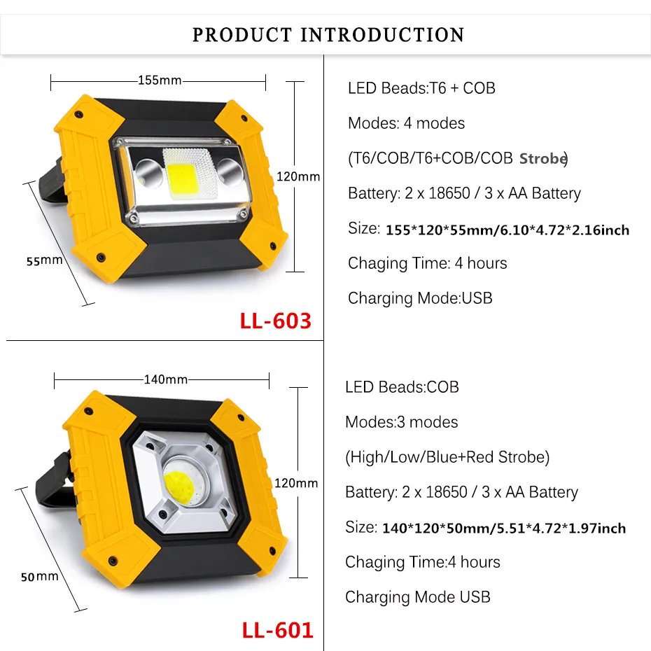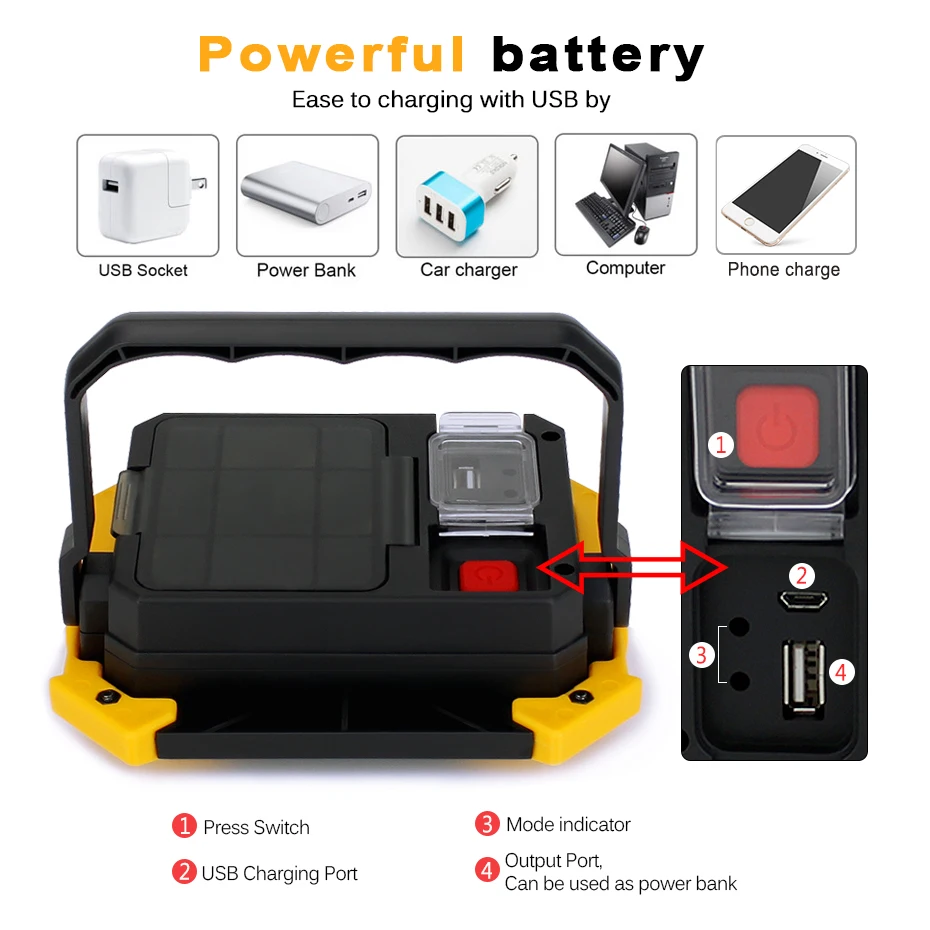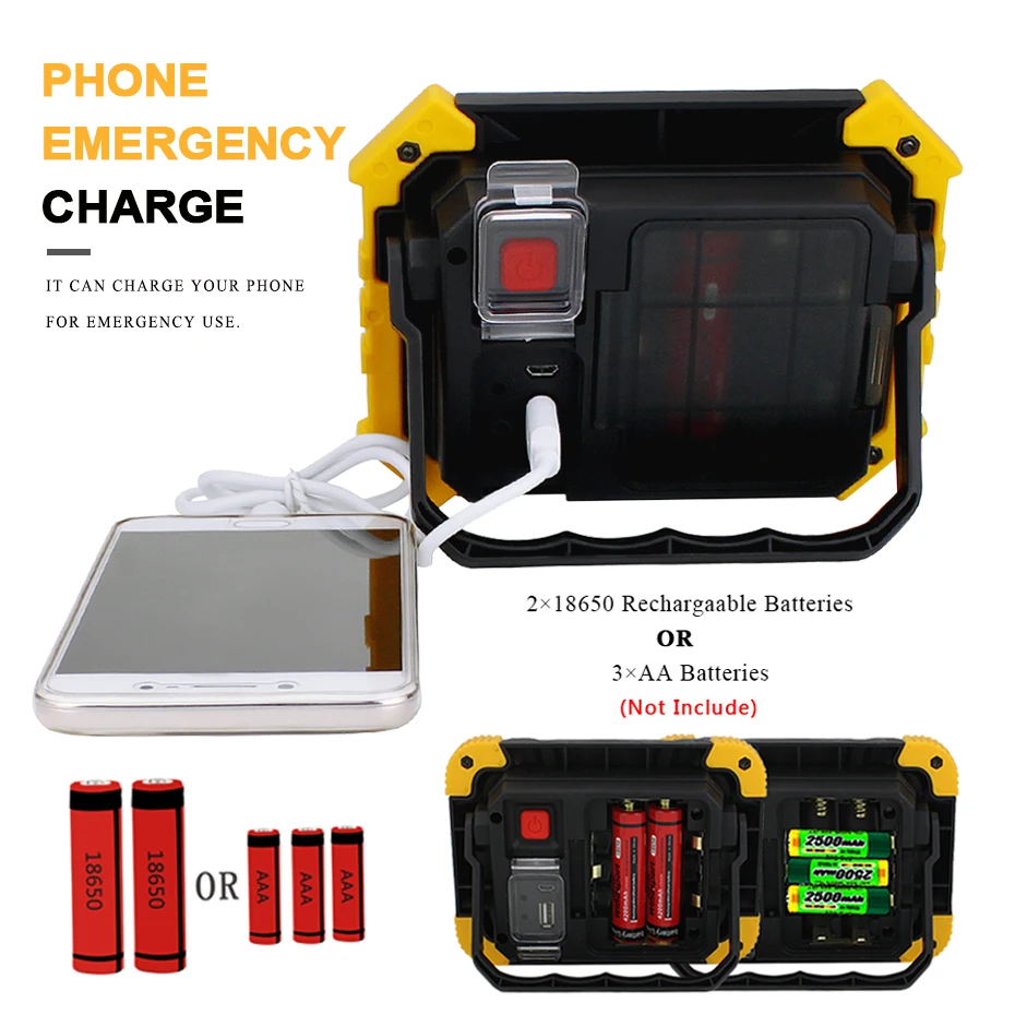 Светодиодный портативный Точечный светильник COB, 20 Вт, фонарь для поиска, ручной рабочий светильник с зарядкой от USB, портативный фонарь для кемпинга 18650