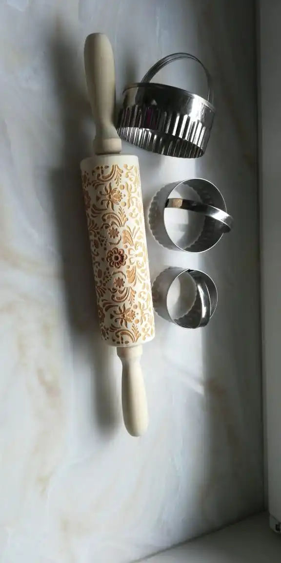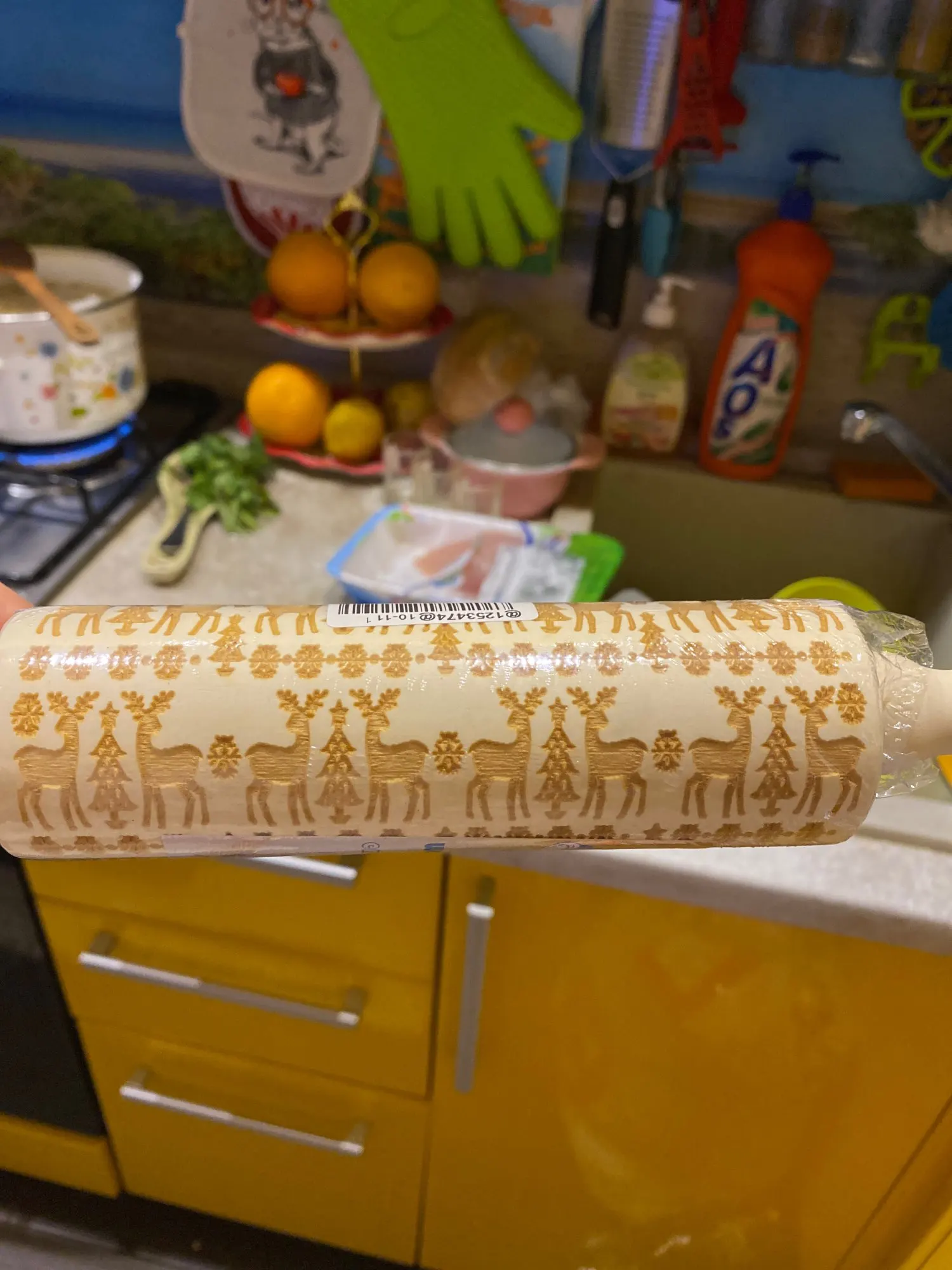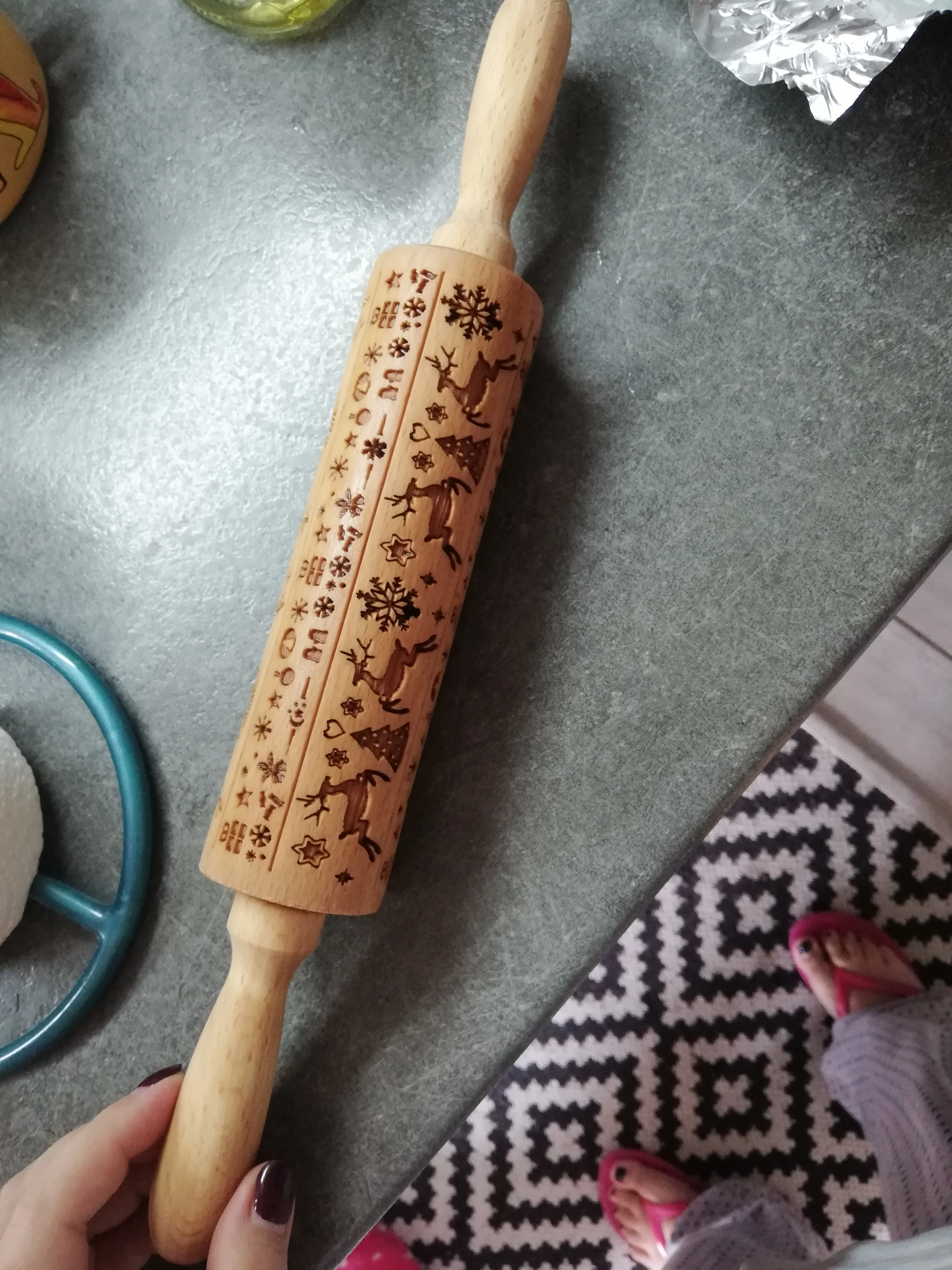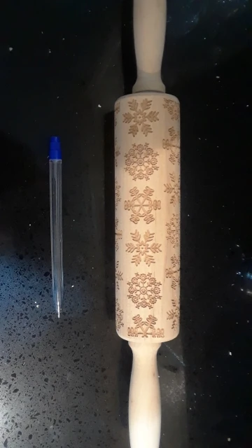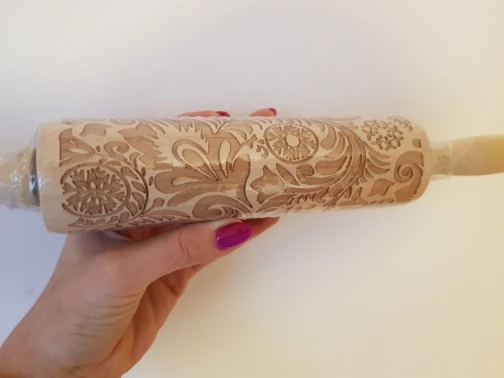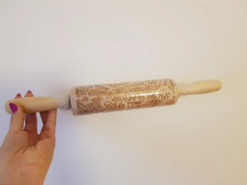 Такую скалку хотела давно и, как только нашла на Али товар с большим количеством хороших отзывов, сразу оформила заказ! Хотела именно деревянную качалку, мне такой вариант кажется более экологичным и уютным по сравнению с пластиковыми аналогами! Сразу скажу, что деревянные изделия в уходе более капризные. Чтобы их очистить нужна горячая вода и жесткая щетка. Замачивать в воде нельзя, из-за этого скалка быстро испортится. Меня это не пугает, я приловчилась!) Итак, скалочка имеет 36 см длины и 5 см ширины в самом широком месте. Глубина тиснения в скалке небольшая, но при хорошей степени надавливания, на тесте остаются отчетливые узоры! Рекомендую!