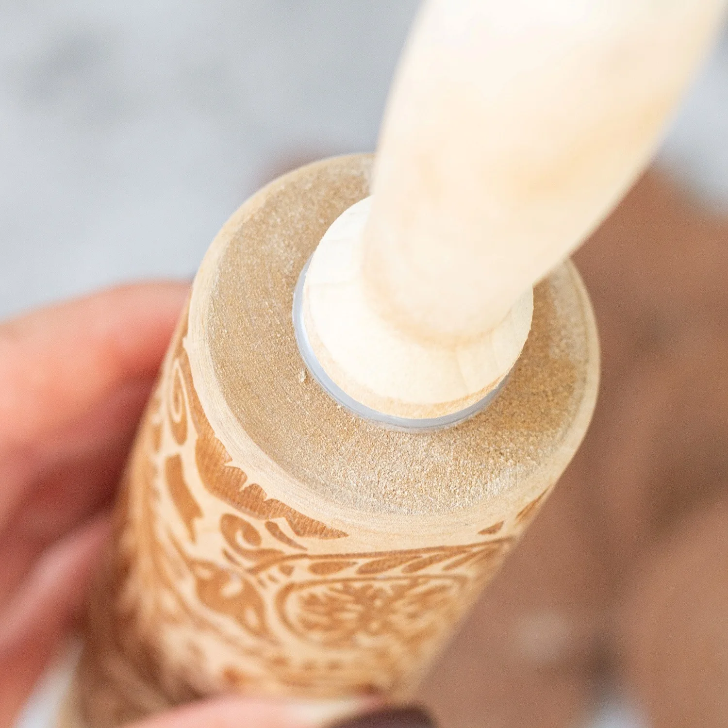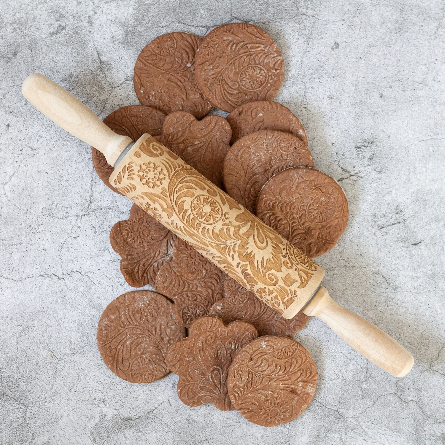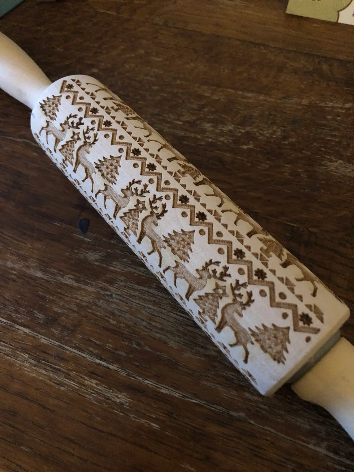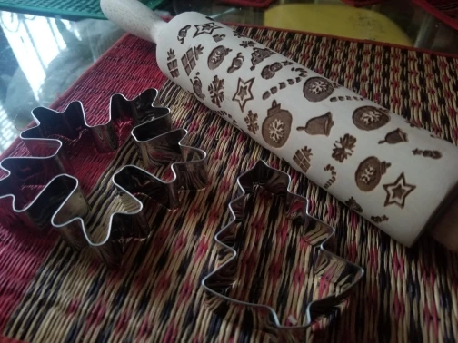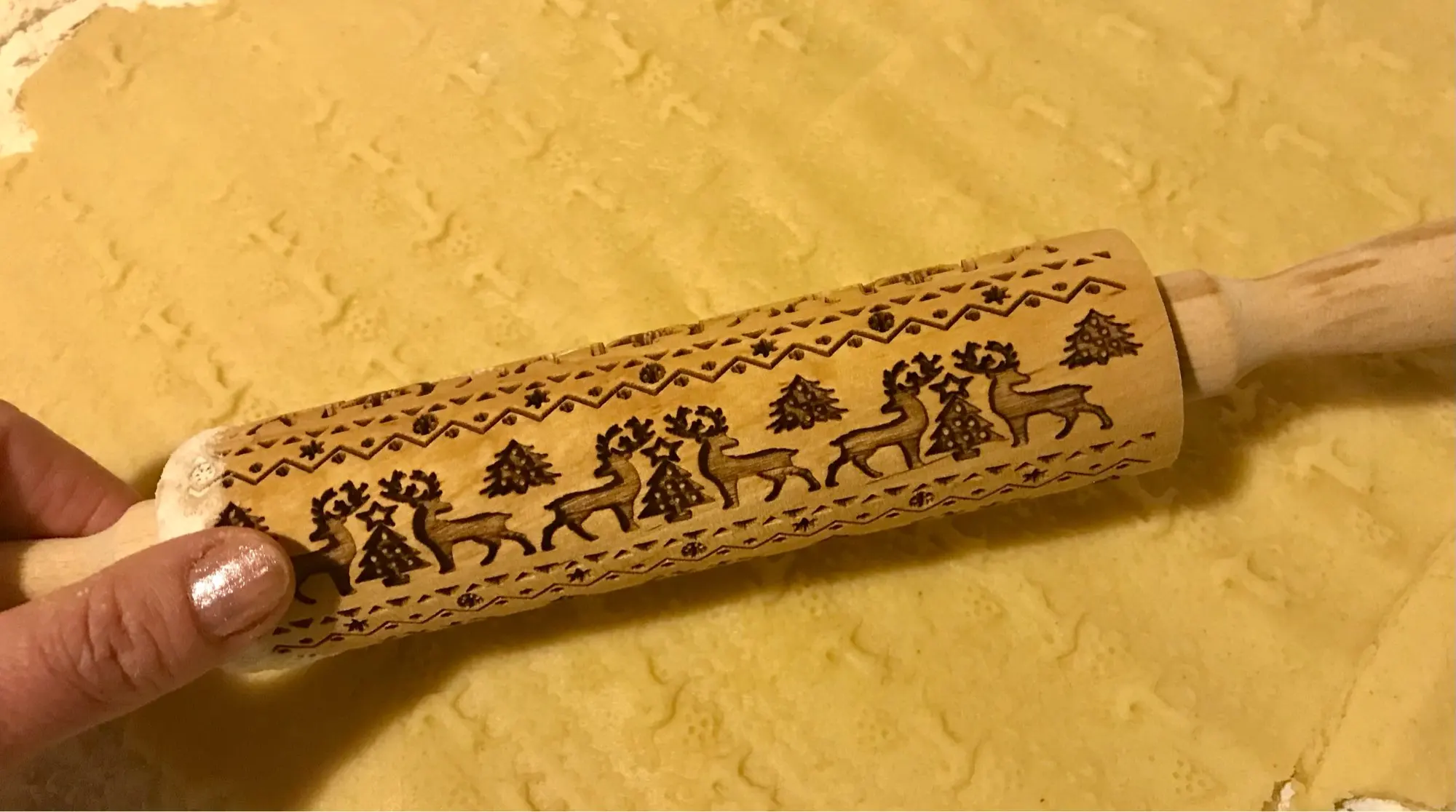Скалка с красивым узором из листьев и цветов, глубина рисунка чуть больше миллиметра. Опробую в новогодние праздники, на вид качественная. Спасибо.