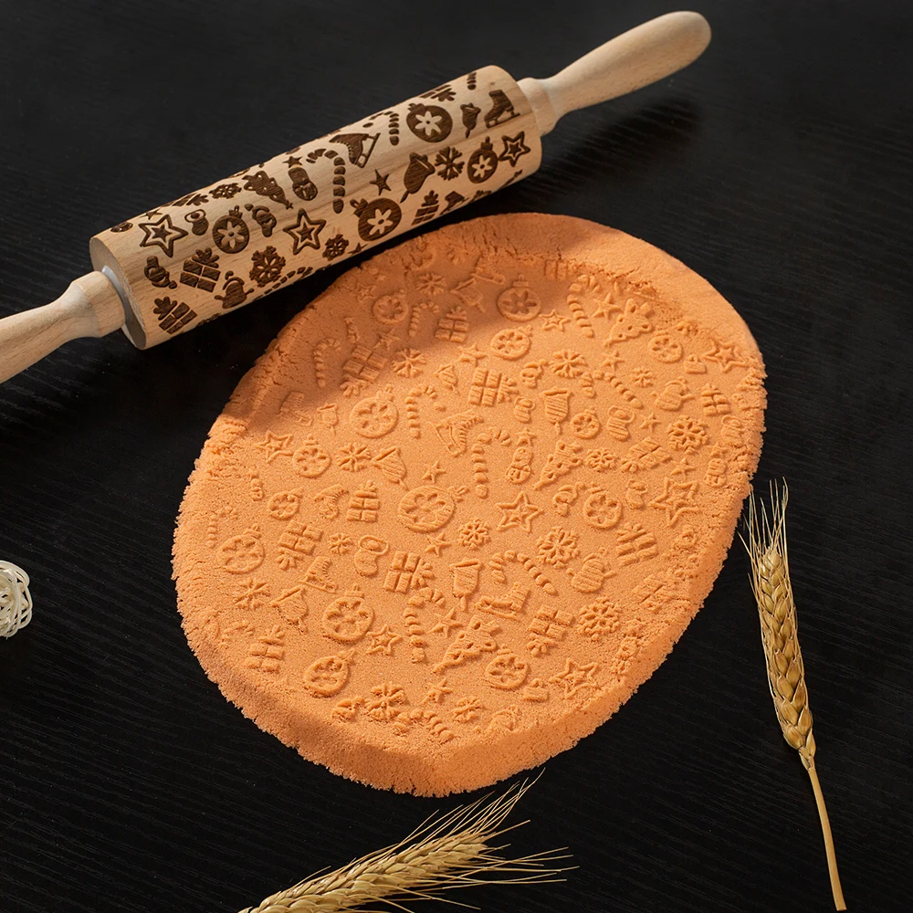 Скалка с изображением листьев рождественского оленя, деревянная, для тиснения, выпечки, печенья, лапши, фондан, пирог, теста, ролик с узором, снежинка