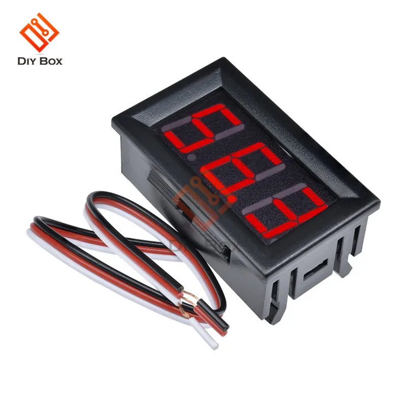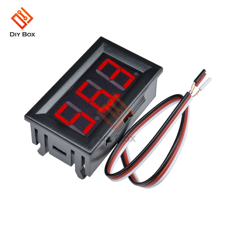 Размер отверстия: 45 мм * 26 ммРазмер контура: 48 мм * 29 мм * 21 ммДесятичная точка отображается между второй и третьей цифрами. Если это 0,00, это 2 после запятой и точность выше. Информация и использование:Основные параметры производительности вольтметра следующие:Размер отверстия: 45 мм * 26 ммРазмеры: 48 мм * 29 мм * 22 ммКабель: 3 кабеляДиапазон: DCO-99.9 в дисплей: три 0.56 светодиодный цифровой трубкиЦвет дисплея: красный/зеленый/синий точность измерения: +/- (1% + 1 слово)Напряжение питания: DC4.5-30 (независимый источник питания)Инструкции по подключению: красная линия: источника питания положительному полюсу, необходимо подключить к положительному полюсу источника питания в диапазоне от 4,5-30 вЧерная линия: общий отрицательный полюс, который является как отрицательным полюсом источника питания, так и эталонным отрицательным полюсом измерения.Желтая линия: положительный сигнал на входе Примечание: заголовок должен питаться независимо. В источника питания Диапазон 4,5-30 В постоянного тока. Когда красные и черные провода подключены к источнику питания, заголовок будет отображаться.0,0, на данный момент, измеренное напряжение может быть подключен между желтая линия и черная линия, после чего измеренные диапазон напряжения постоянного тока 0-99,9 V.