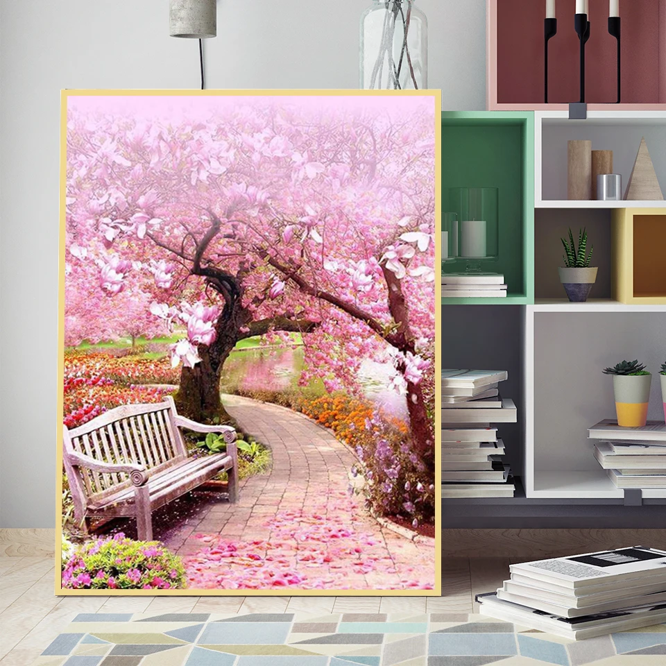 Алмазная мозаика 5D "сделай сам", розовое Вишневое дерево, 3D картины для вышивки стразы, цветы, пейзаж, декор, 100%