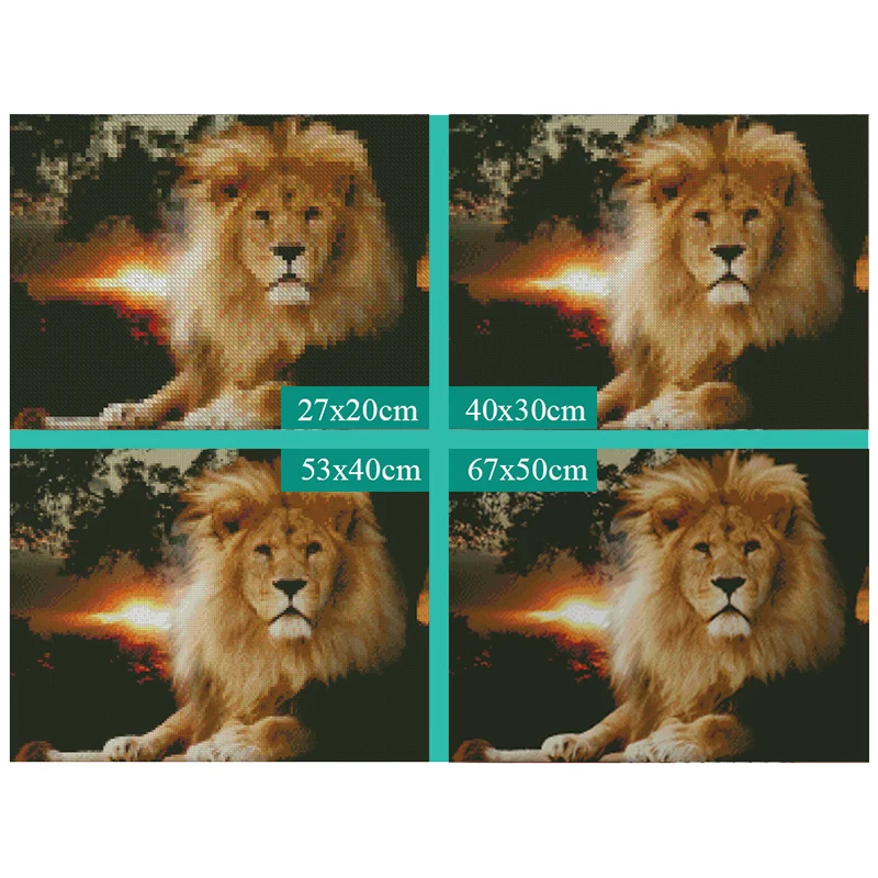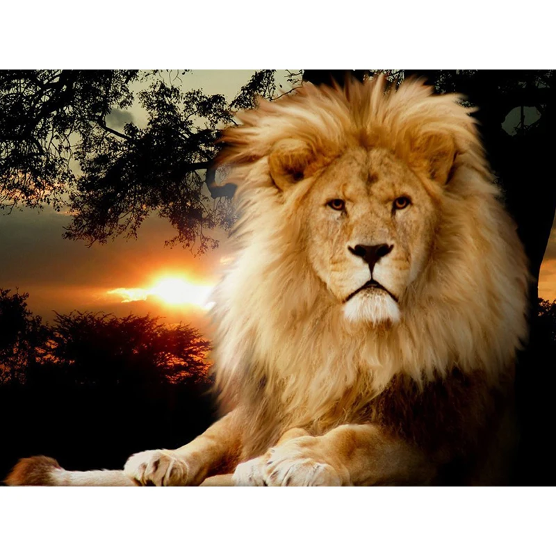 Алмазная 5d-картина закат лев, круглые стразы, картина с животными, 100%