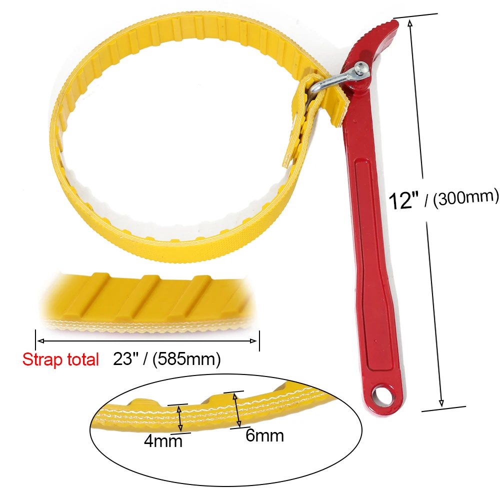 Гаечный ключ с регулируемым метрическим ремнем, гаечный ключ, инструмент для удаления масляного фильтра с нескользящим резиновым ремешком и ручкой из высокоуглеродистой стали, 12 дюймов