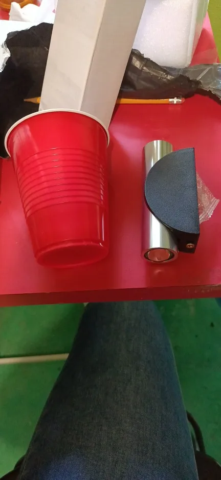 Me llegó en 20 días. El tamaño es el equivalente al de un vaso, la imagen es un poco óptica en cuestión del tamaño real. Sin embargo, es metal la estructura, por lo que se mira muy bien y no se ve corriente, al contrario.
