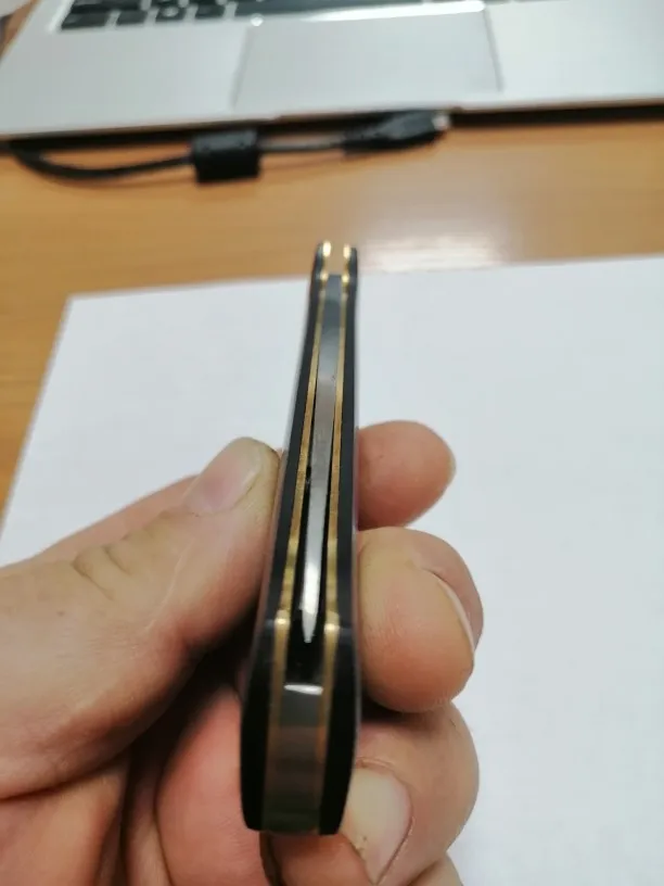 Нож хороший или из хорошего материала и отличного края. Когда вы закрываете его, он немного выключен. Продавец произвольно изменил транспортную компанию с "Aliexpress Standard Shipping" на "способ доставки продавца". Офис занял немного больше двух месяцев.