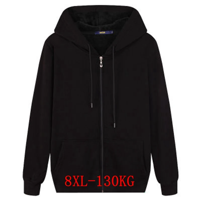 Свитшот мужской с капюшоном, теплая хлопковая кофта с длинным рукавом, на молнии, для бега, большие размеры 5XL 6XL 7XL 8XL, Осень-зима