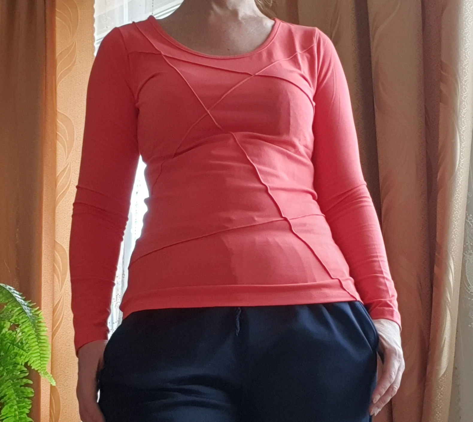 Хорошая осенняя футболка, цвет насыщенный, качество приятное, пошив аккуратный. Размер подошел на 93-74, не в обтяг и не слишком свободно. Рекомендую товар и продавца!