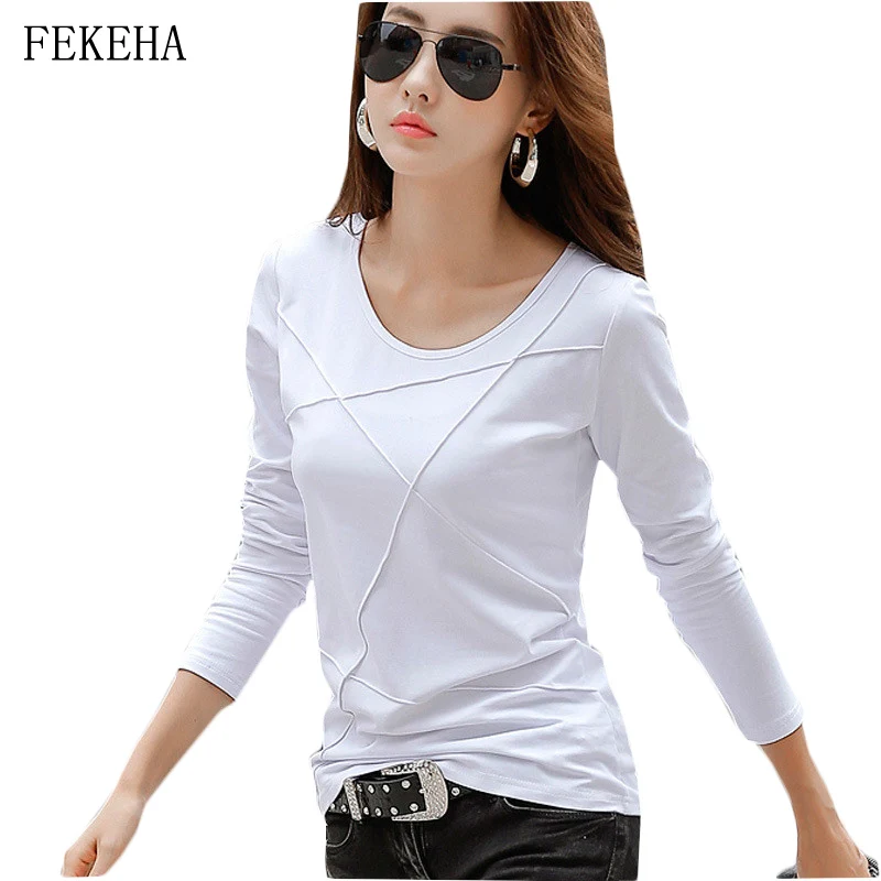 Новинка Весна 2022, женская футболка, облегающая черная, белая, синяя офисная футболка с длинным рукавом, женские топы, хлопковая футболка, повседневная Высококачественная