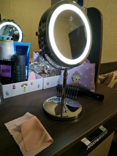 Зеркало супер, но увеличительная сторона не порадовала. Увидеть себя в приближении можно лишь ооочень приблизившись к зеркалу, а если отдалится, то картинка размывается. Это максимально неудобно. Подсветка красивая, но ее использовать как основной источник света- плохая идея. А в остальном всё супер. Качественная вещь, очень красивая.