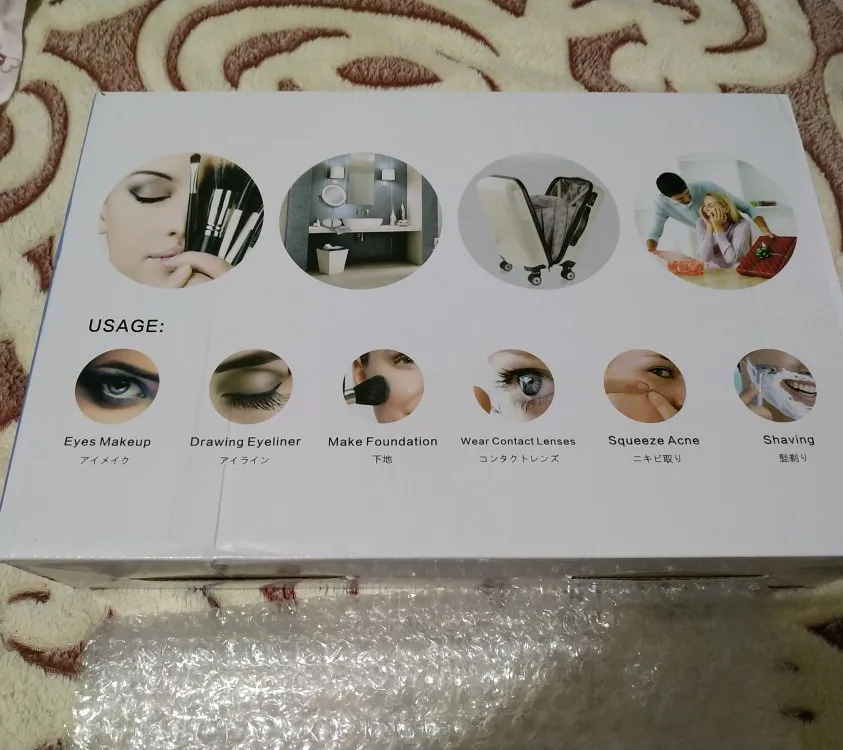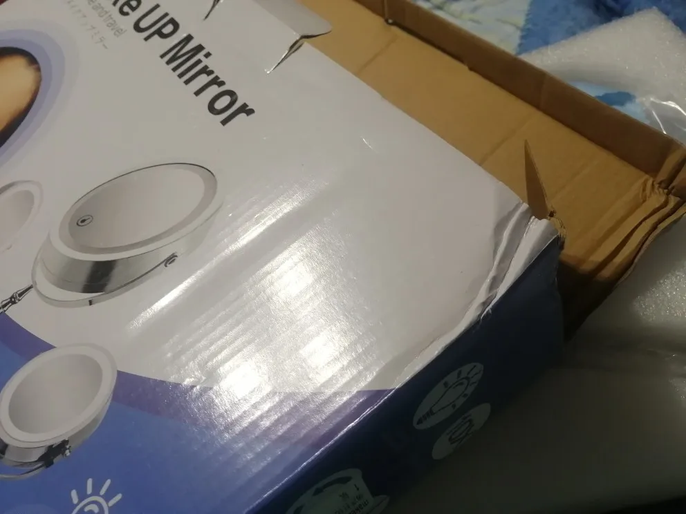Доставили до двери курьером очень быстро. Упаковка великолепная: в пакете коробка была обернута в пупырчатую пленку, внутри самой коробки упаковано в поролон, все зафиксировано и не болтается. зеркало пришло без каких-либо повреждений. На упаковке наклейка для курьерской информации, чтобы не бросали, потому что в середине стекло. Отлично увеличивает!!!! Сделано все очень качественно. Подсветка работает, не раздражает. Спасибо продавцу!!! Всё соответствует описанию. Продавец положил тряпочку для протирания зеркальной поверхности. Дополнительный плюс ему за это:))