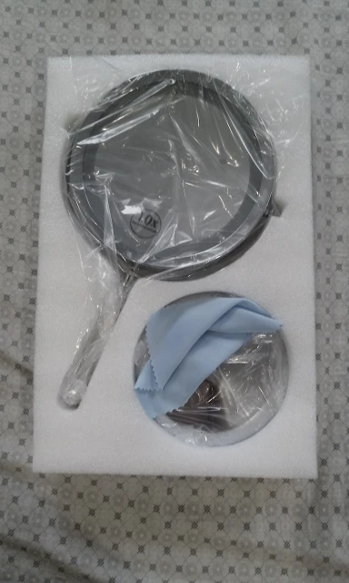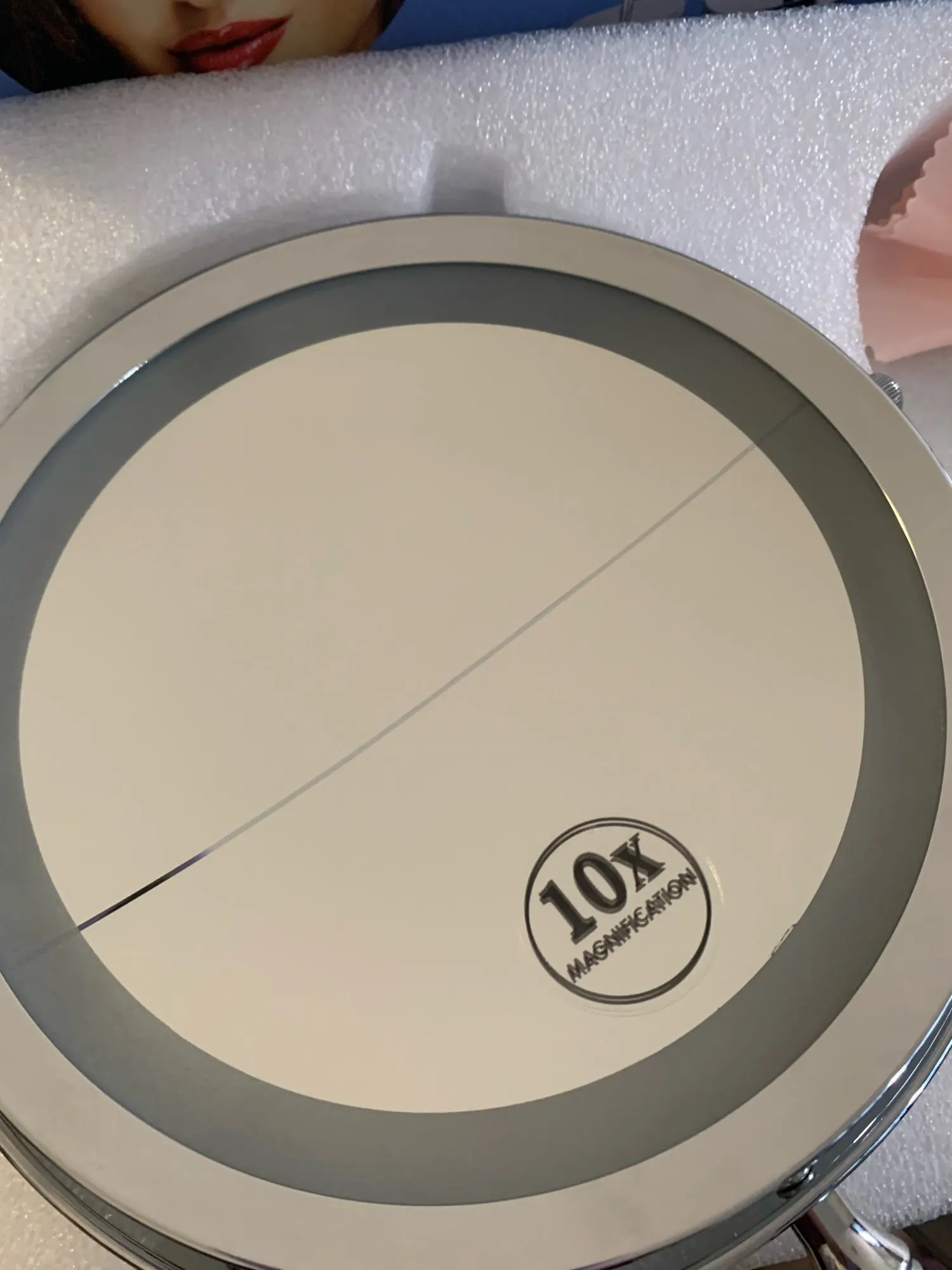 Заказ доставили за 7 дней до Мурманска. Всё соответствует описанию. Продавец положил тряпочку для протирания зеркальной поверхности. Плюсик ему за это)) При транспортировке коробка помялась в двух сторон на углах, но это никак не повлияло на качество товара, так как внутри находится вспененный материал, который хорошо защищает зеркало. Покупала батарейки ААА 4 штуки для подсветки. Сама подсветка ненавязчивая, не «бъёт» в глаза, но её вполне хватает, чтобы накраситься при отсутствии какого-либо другого освещения. Десятикратное увеличение - вещь хорошая! Единственный минус зеркала ×10: надо практически вплотную поднести лицо к зеркалу, чтобы хорошо всё было видно, иначе,получается размытое изображение. Спасибо продавцу за быструю доставку!