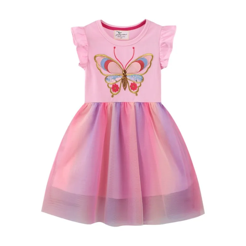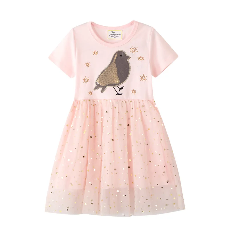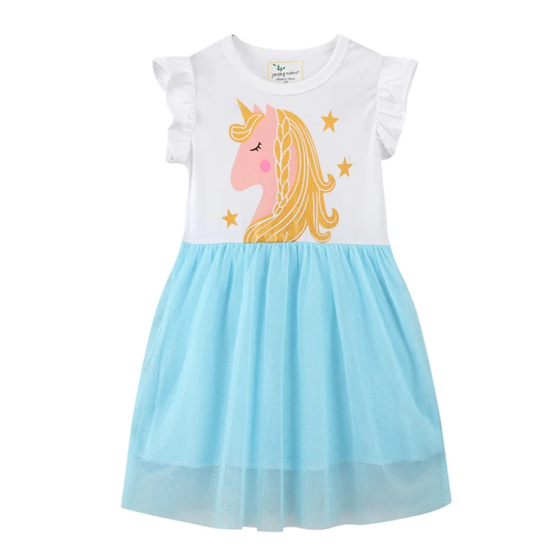 Летнее платье для девочек, новинка, модная детская одежда для малышей, хлопковое платье принцессы с аппликациями в виде животных, птиц, Единорога