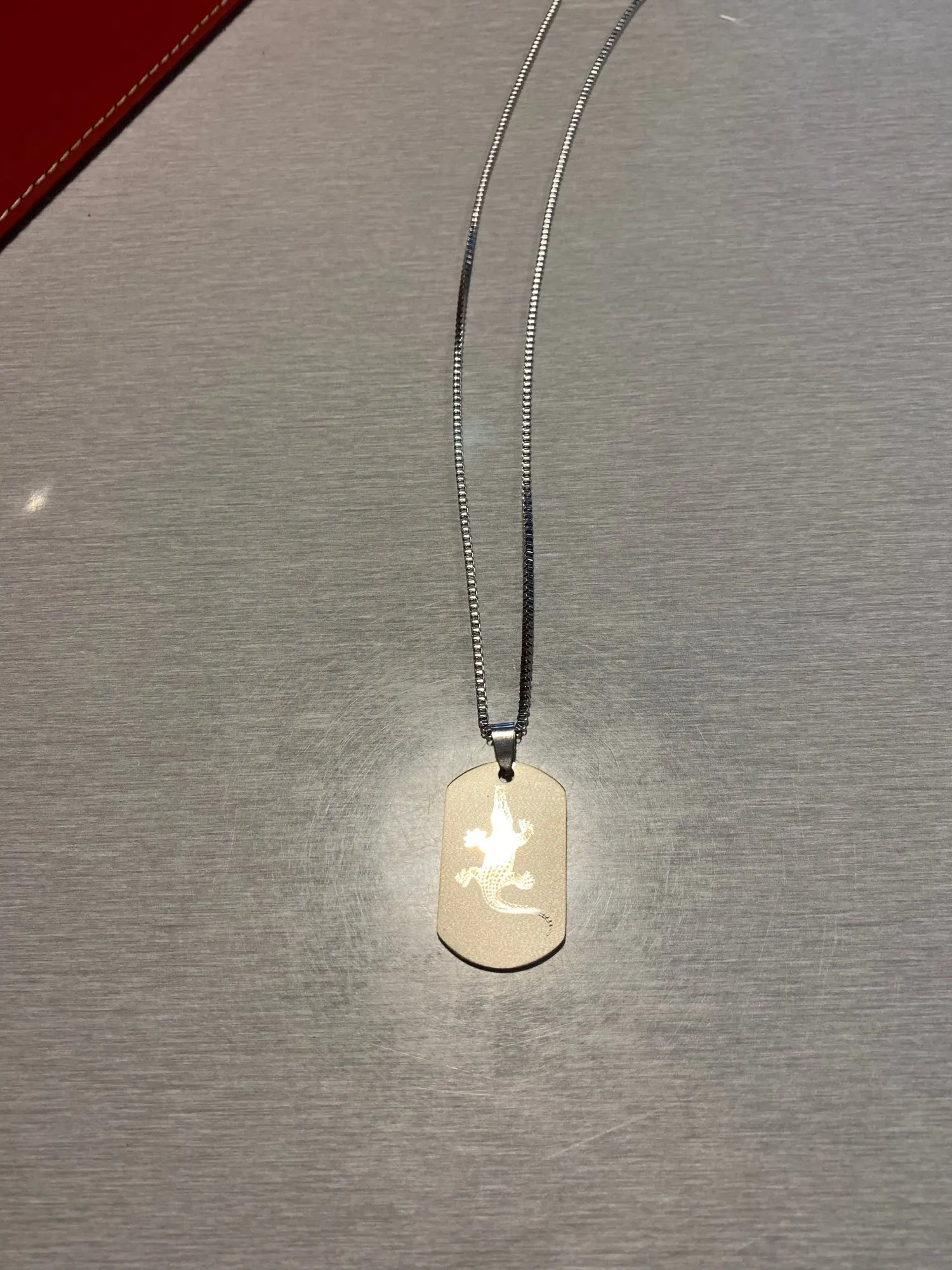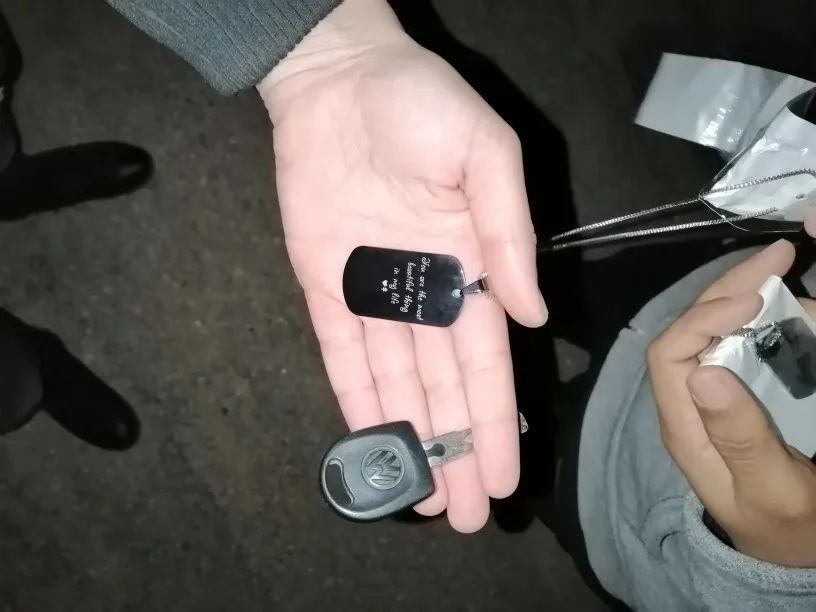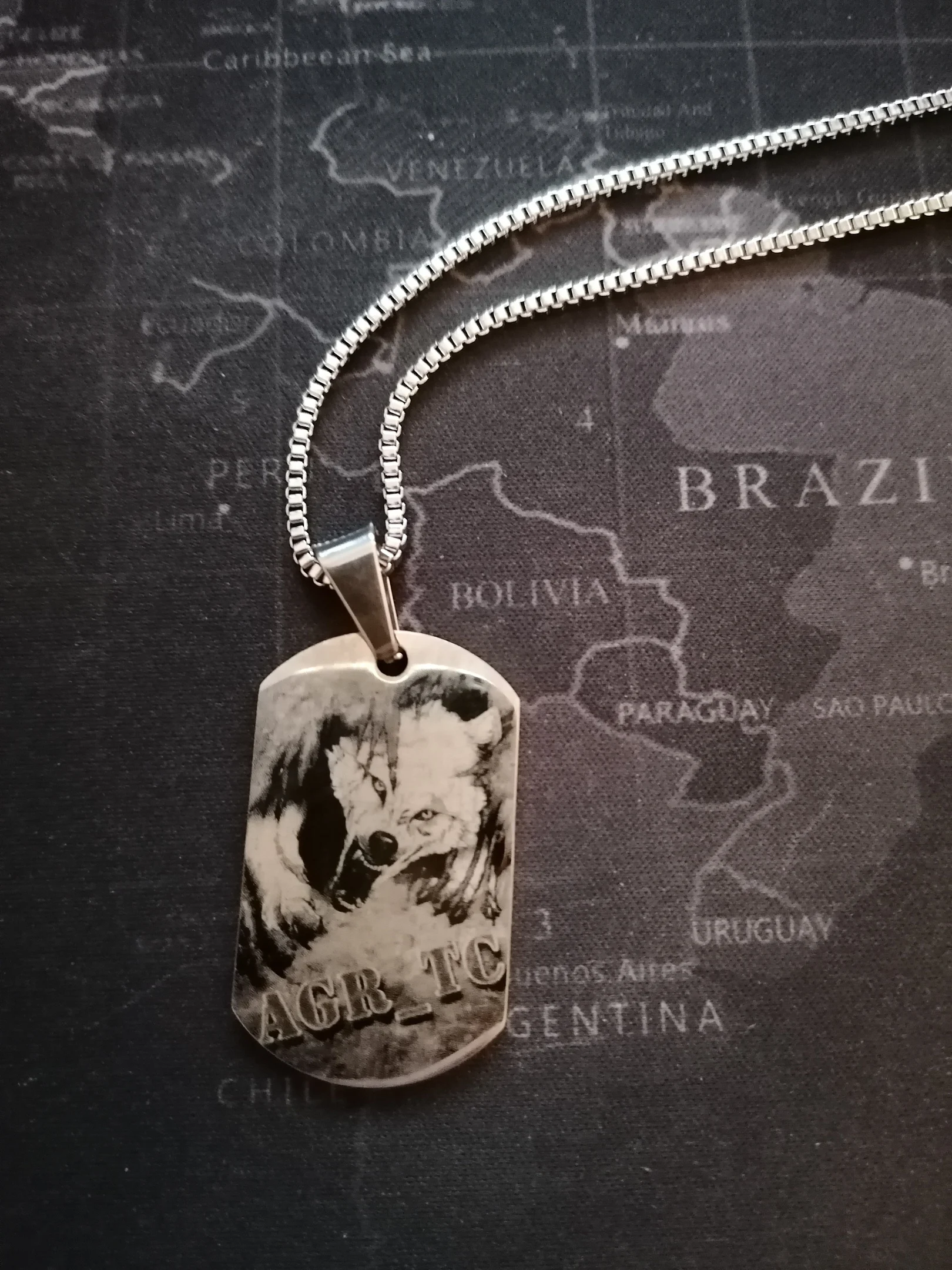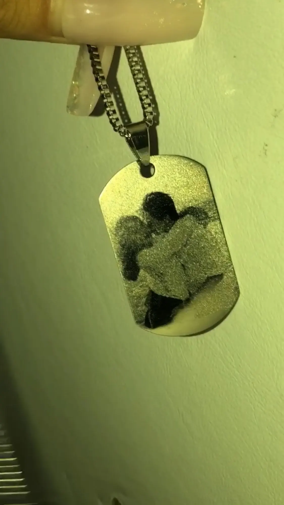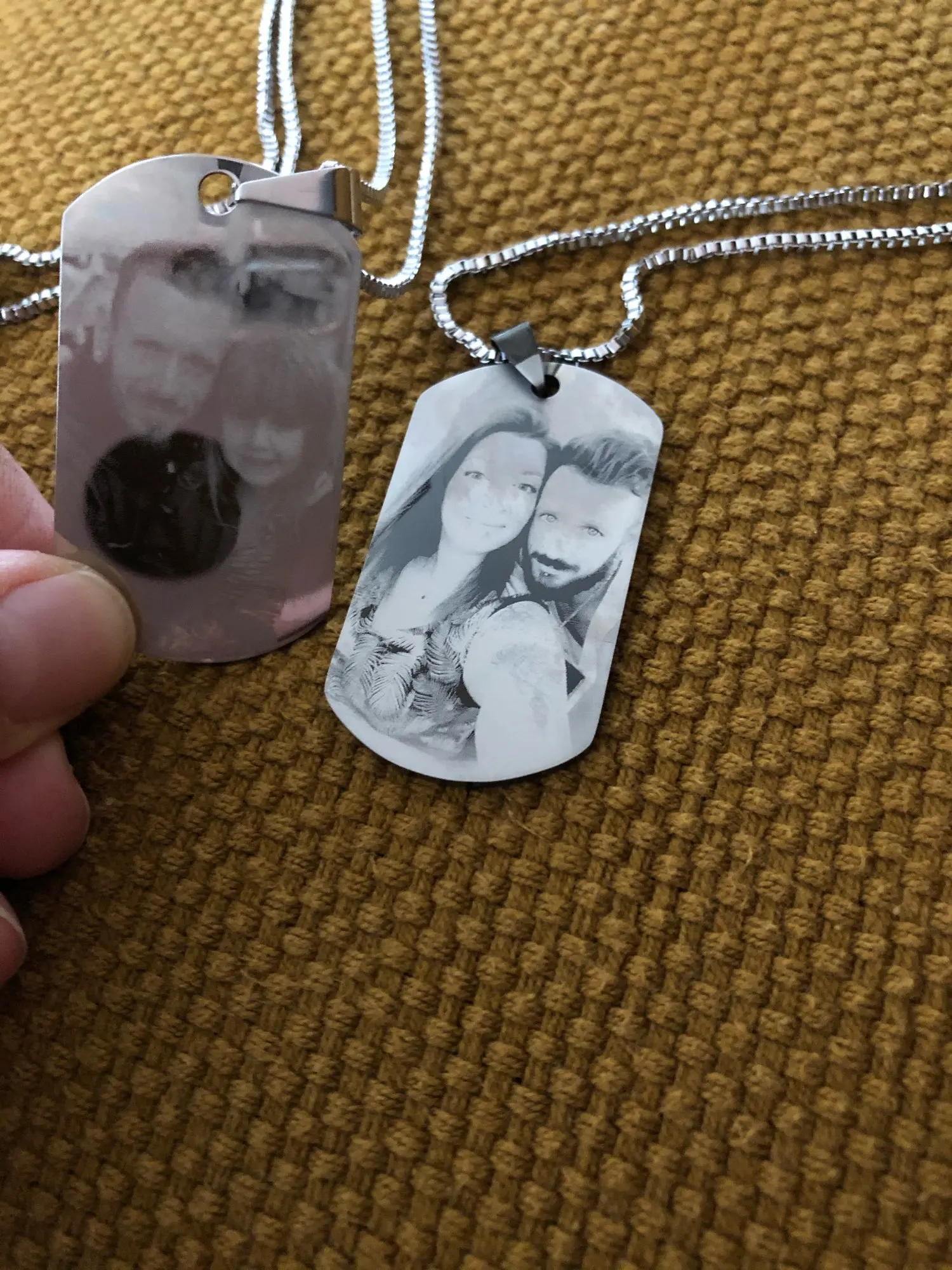 Потрясающий продукт, как неуверенный первый заказ, вы не уверены, основываясь на фотографиях других людей. Он действительно опускается на угол и освещает, что вы смотрите на него. Единственный отрицательный элемент-металлический элемент, который удерживает бирки на цепочке, так как он просто Согнут на место, но это также позволяет легко удалить бирки и поместить их на свою цепь. Изображение четкое, гравировка отличного качества и была доставлена раньше, чем ожидалось.