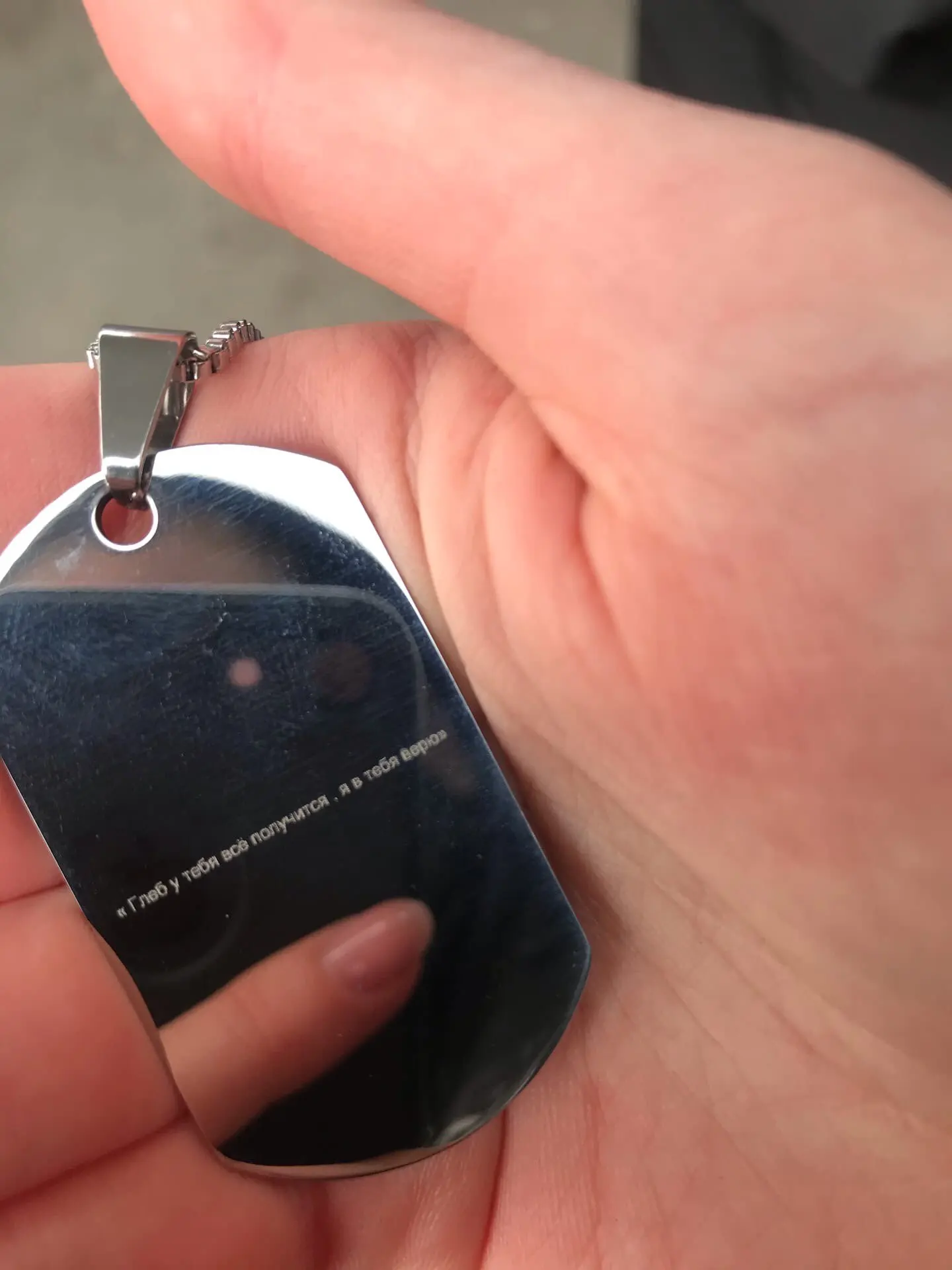 Доставка до Москвы 28 дней, трек до постамата, с отправкой не тормозит. Товар соответствует описанию, выглядит как на картинке, тяжёлый, цепочка коротковата. По гравировке особых замечаний нет, но межбуквенный на русском широковат. Выглядит странно, хотя читается хорошо. Заказ на гравировку формулируйте максимально детально, я, допустим, затупил и в итоге получил все надписи с маленькой буквы, ровно как заказал.)))) Продавец отвечает максимально быстро. Так что смело заказывайте, если собрались.