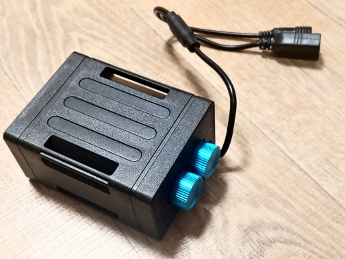 Очень хорошо сделано, приятный пластик высокой плотности с уплотнением погоды. Требуется больше защищенных литиевых ячеек с достаточным количеством места. Никаких жалоб. Кнопка в верхней части корпуса выключается/включается выход USB. Порт постоянного тока не переключается