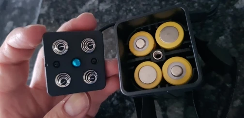 Еле нашел, какой стороной вставлять аккумуляторы. Запах пластика. В остальном все хорошо.