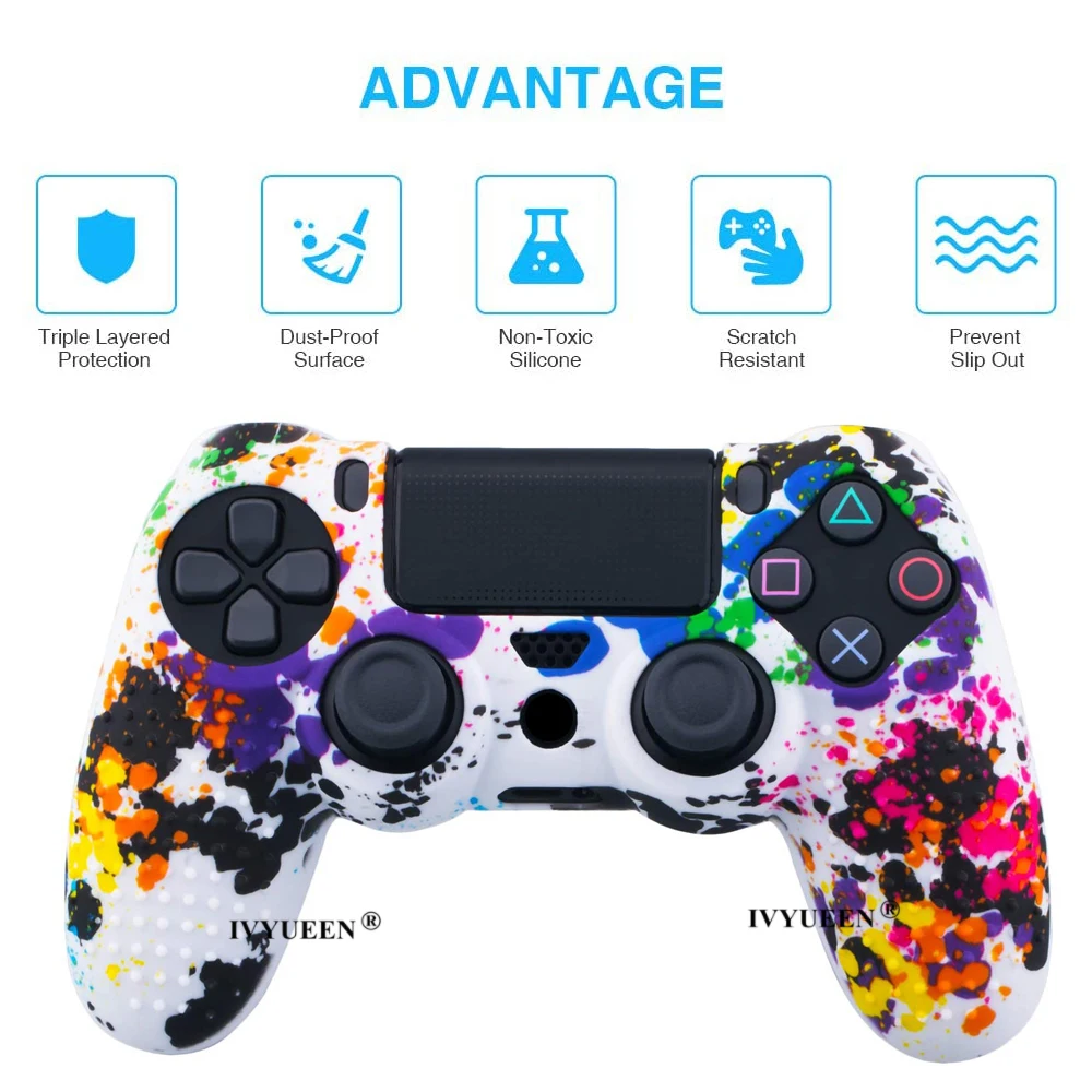 Противоскользящий силиконовый защитный чехол IVYUEEN для Sony Dualshock 4, PS4, DS4 Pro, тонкий чехол для контроллера, аналоговые накладки для большого пальца