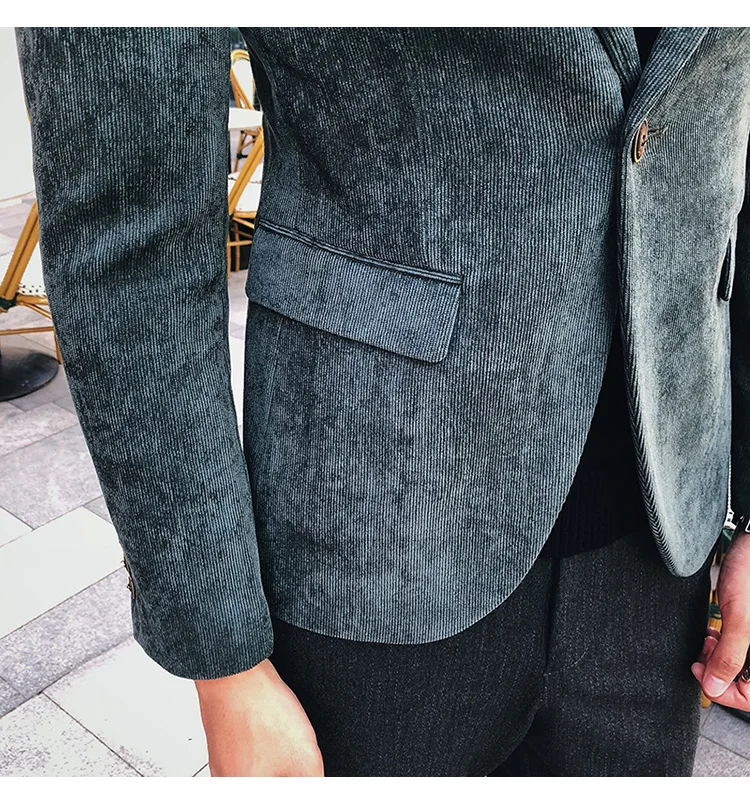 Новый мужской повседневный костюм, Мужская Вельветовая куртка в стиле ретро, однотонная Классическая куртка с одной пряжкой, мужское элегантное пальто