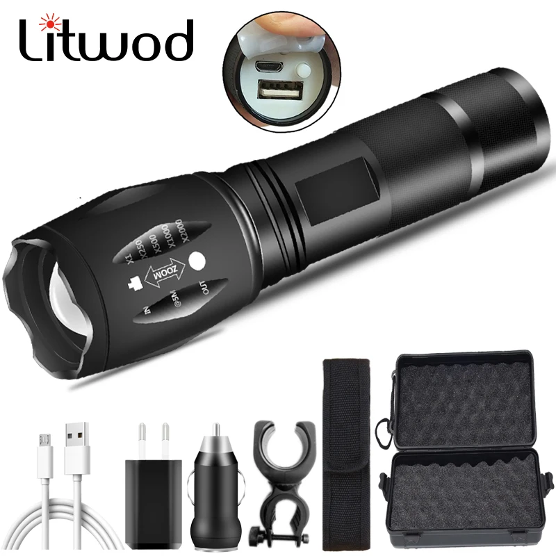 Z45 Высокое качество XM-L2 U3 T6 Светодиодный фонарик Встроенный аккумулятор 18650 Фонарик с возможностью масштабирования Powerbank Функция фонарь для кемпинга Litwod