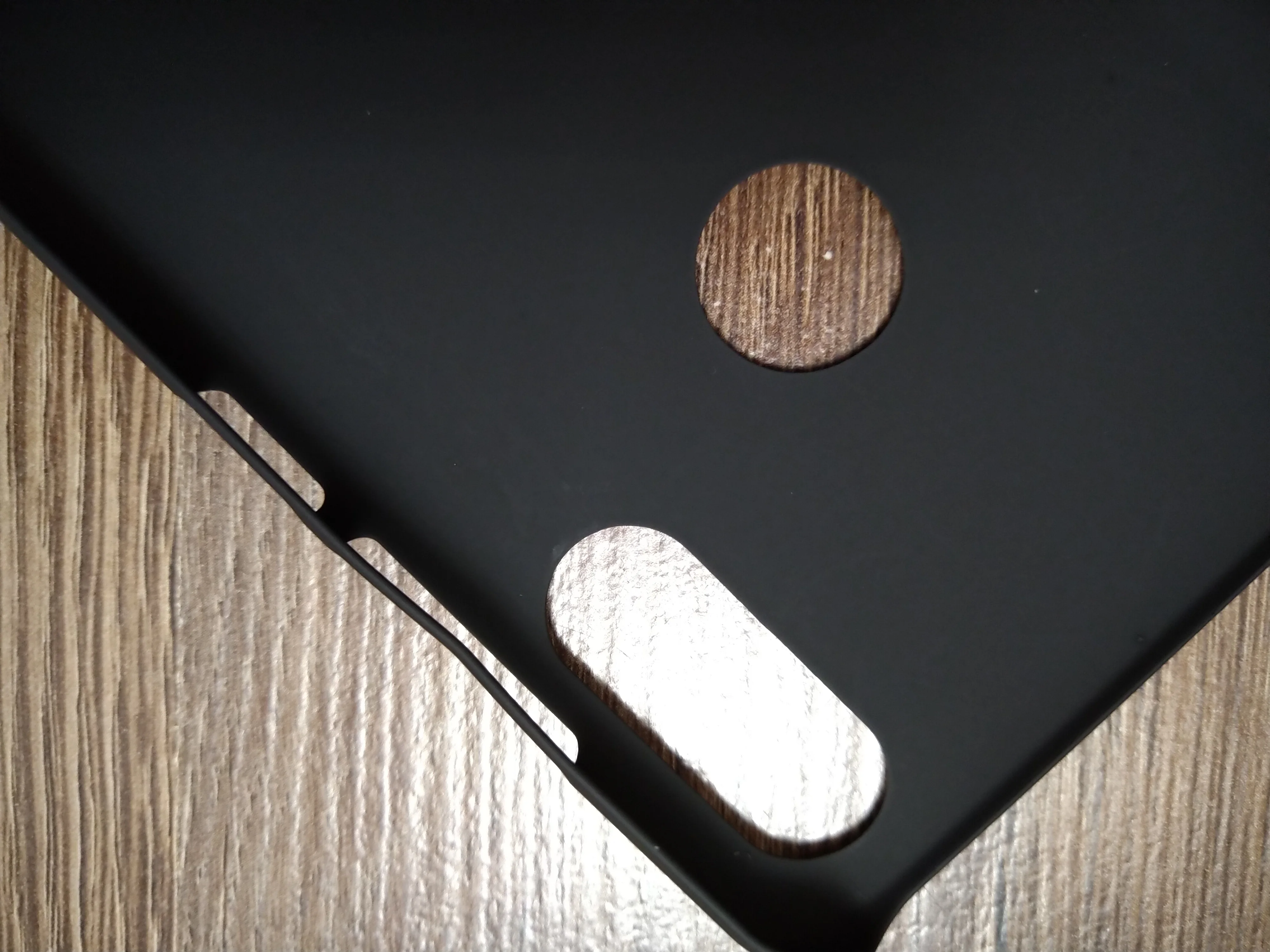 Достаточно интересный и необычный чехол. Тонкий и лёгкий, вырезы под кнопки достаточно большие и позволяют нажимать кнопки легко.